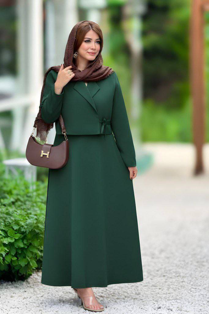 ست سه تکه عسل(دامن و کت و کمربند) جنس : میکرو ضخیم مشکی, سرمه, شکلاتی تیره, شکلاتی روشن, سبز سایز دو, سایز یک زنانه