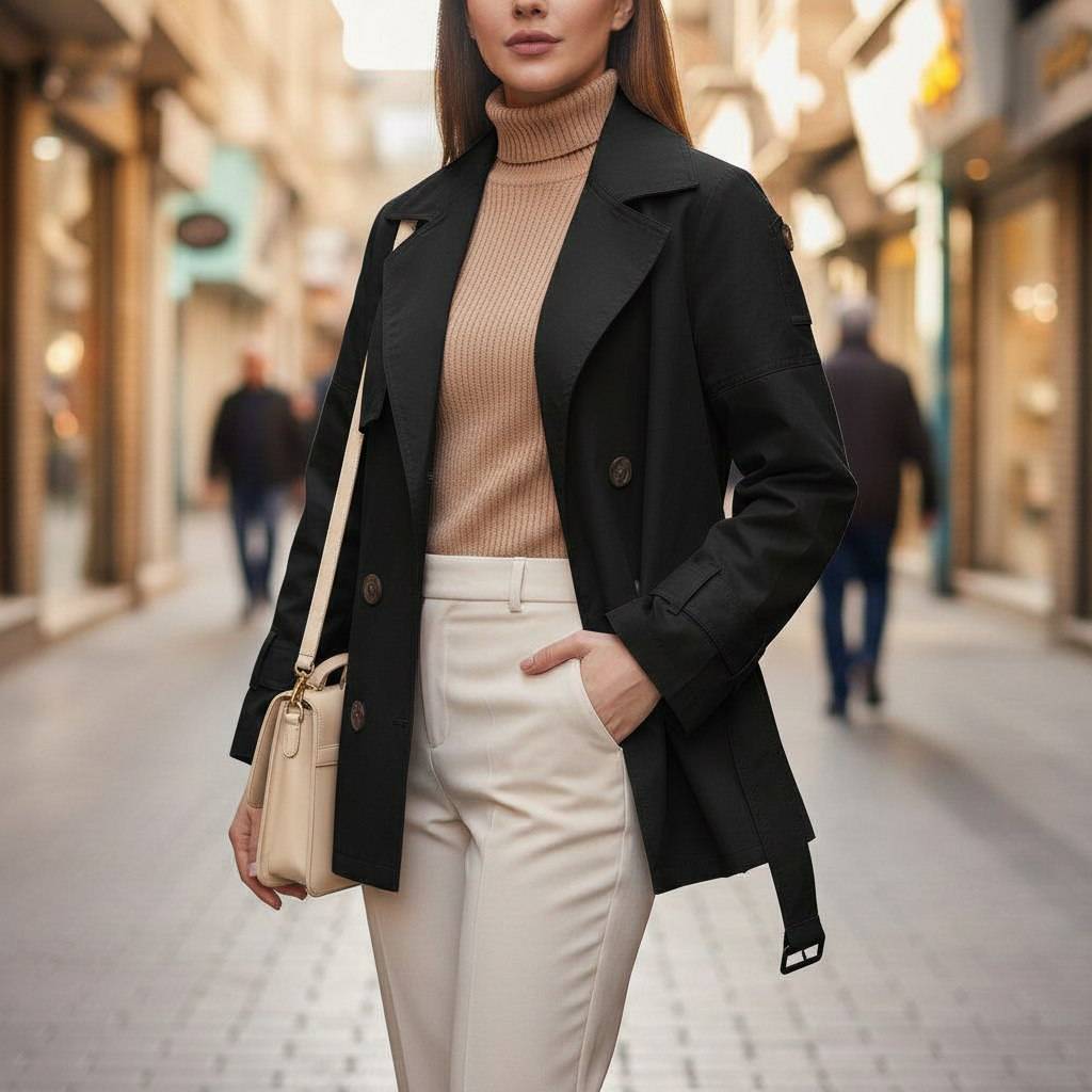 ترنچ کت شاینا جنس : کتان مشکی, سورمهای, نسکافهای, کنفی فری سایز زنانه