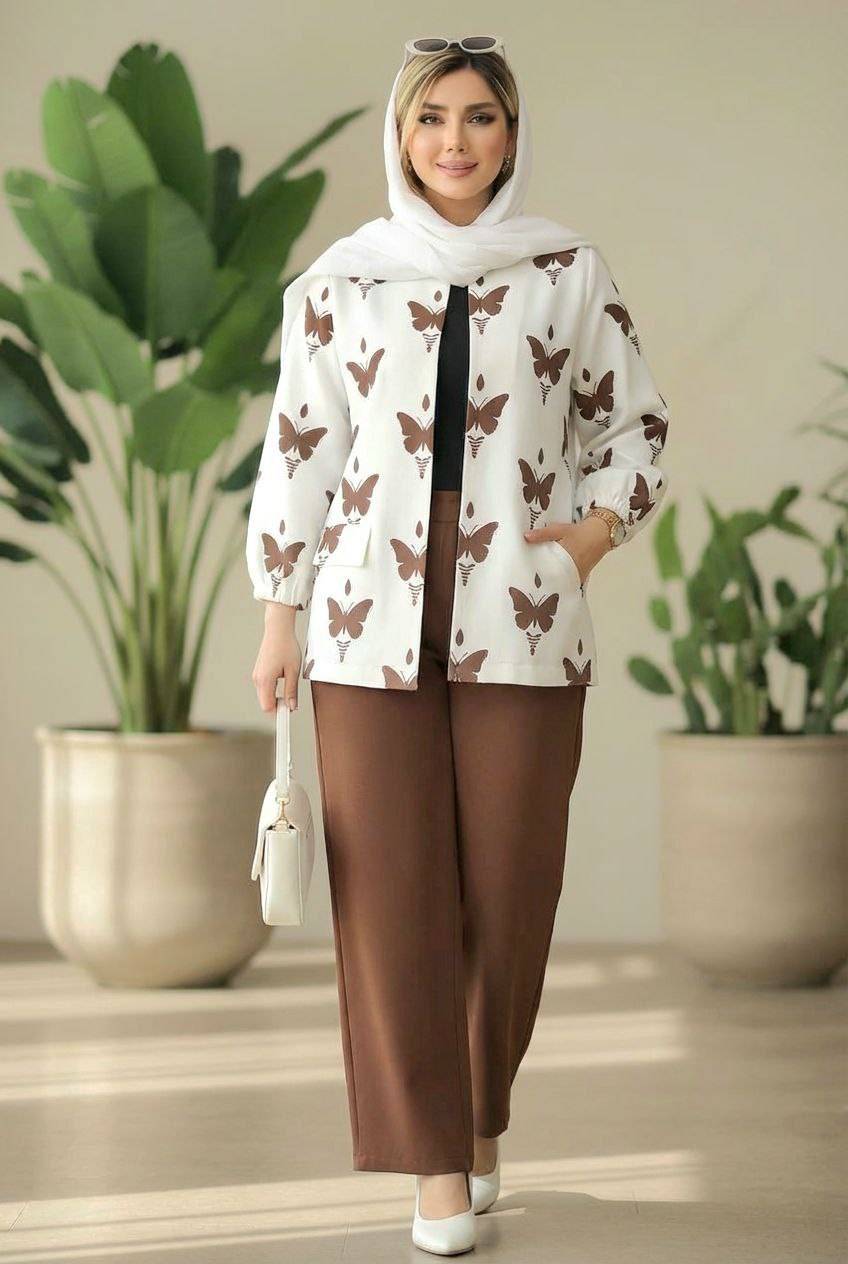 کت و شلوار پروانه جنس : مازراتی باکیفیت مشکی, سرمه ای, کله غازی, کرم, آبی, شکلاتی فری سایز زنانه