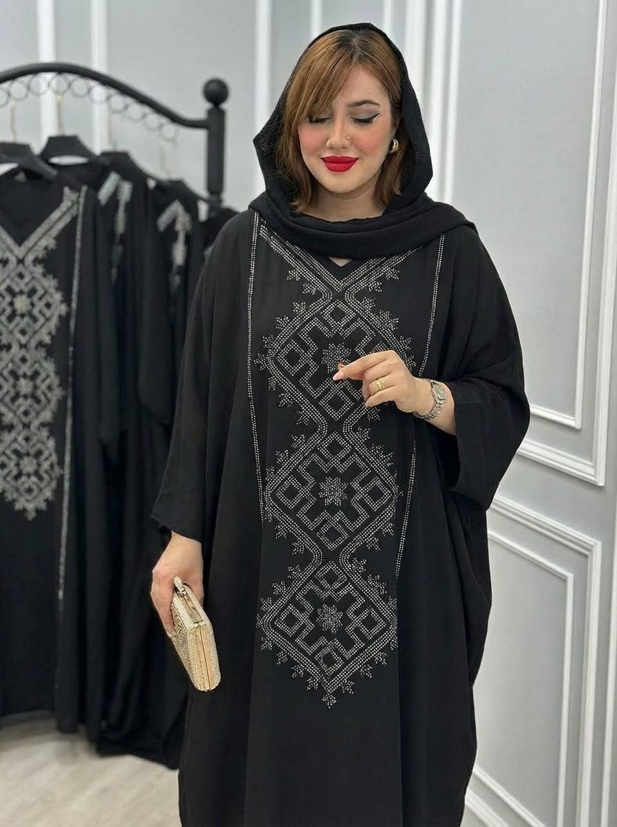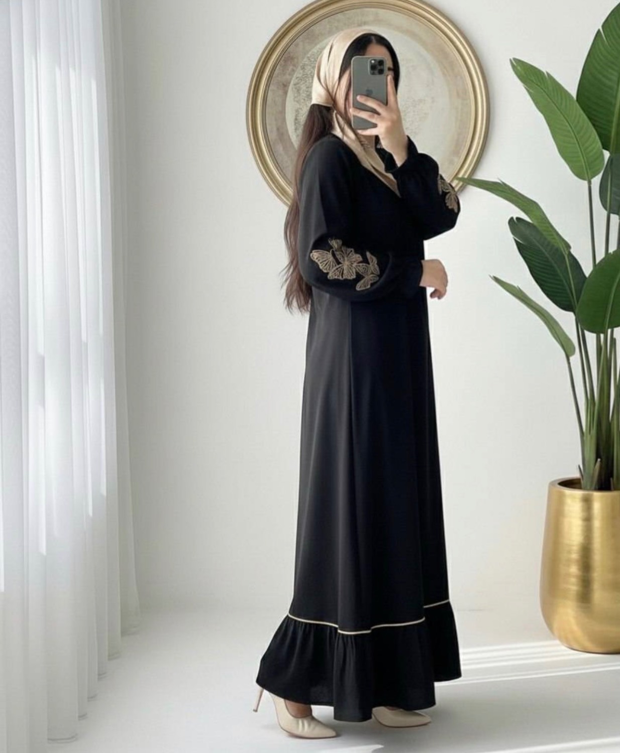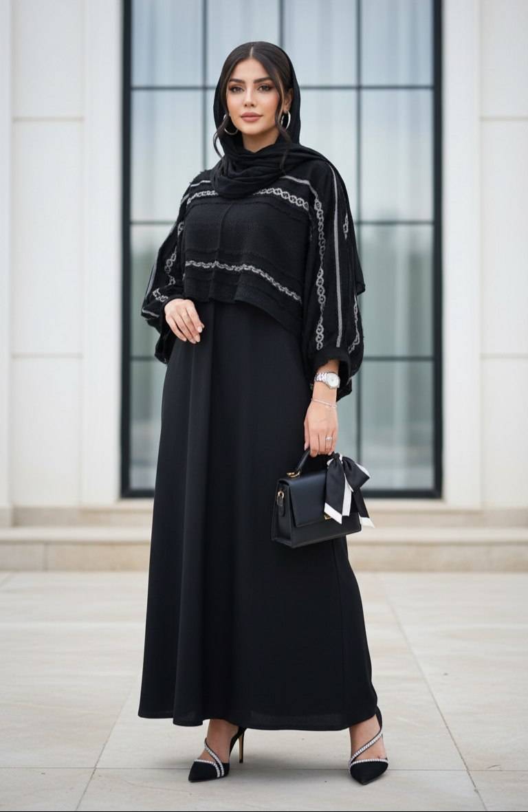 عبایی دست دوزی انیکا جنس : الیزه سوپر وارداتی مشکی فری سایزناموجود