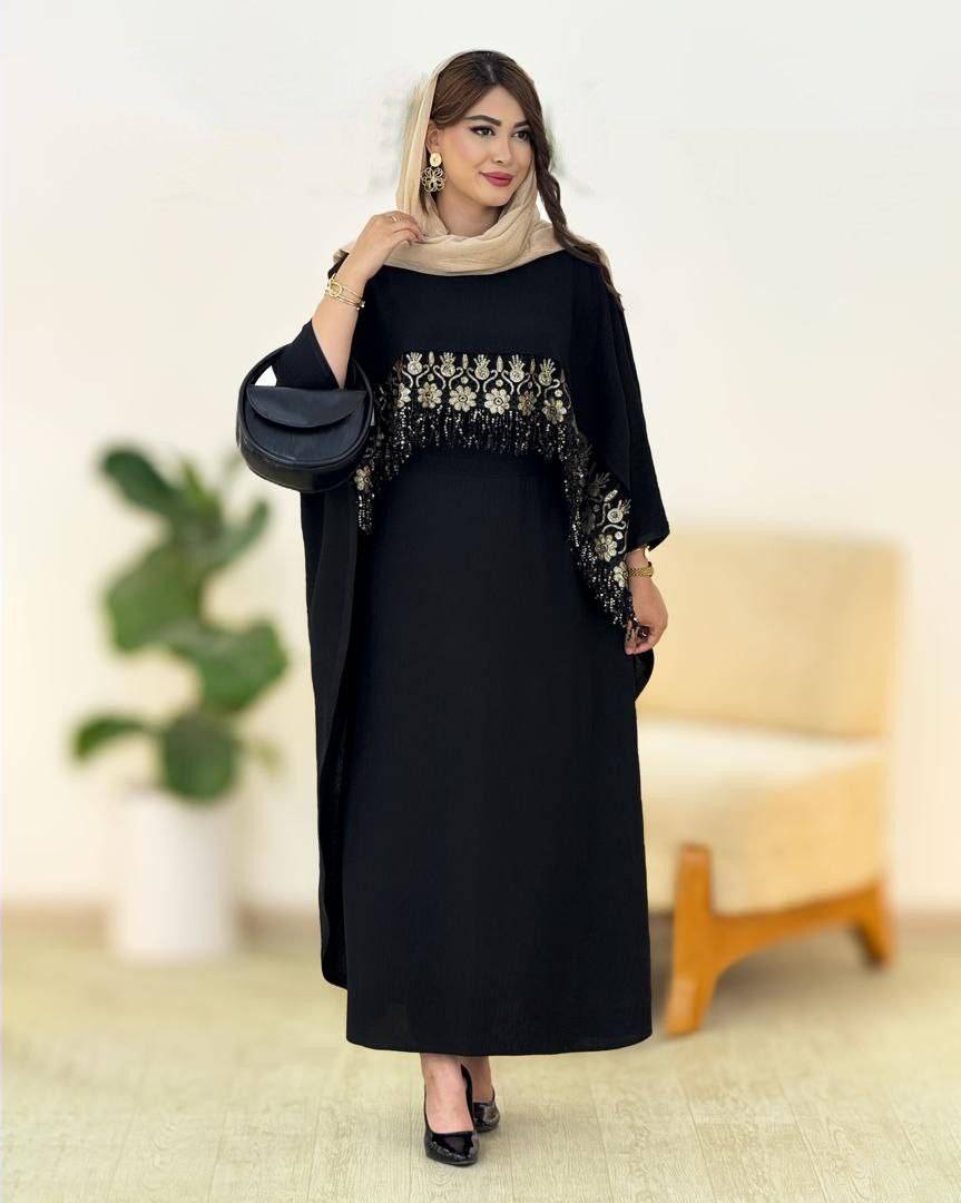 ست پیراهن رویه دار فاخر جنس : ابروبادی مشکی, طلایی فری سایز زنانه