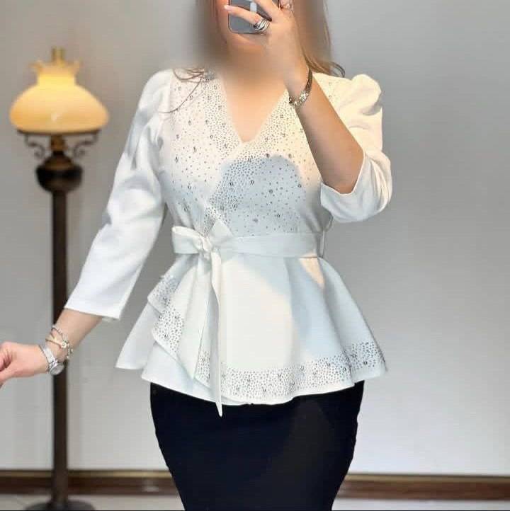 شومیز رونیکا جنس: مازراتی درجه1 سبز - سدری - سفید - سورمه - مشکی - نسکافه سایز بندی زنانه