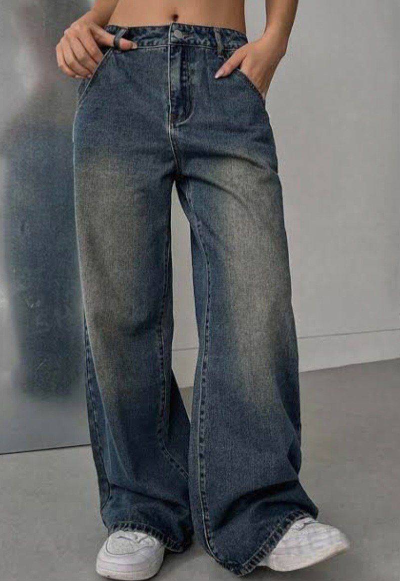 شلوار فول بگ زنانه - جنس : جین اصل شسته شده و سنگشور شده- سایز 38 تا 40