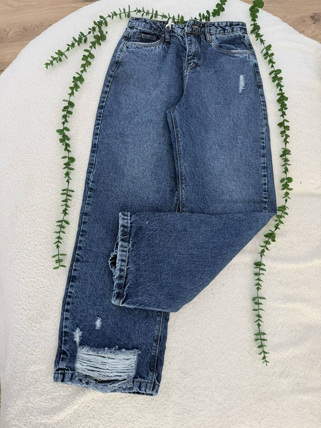 شلوار جین نیم بگ پایین زاپ جنس : جین ترک سایز بندی تک رنگ زنانه