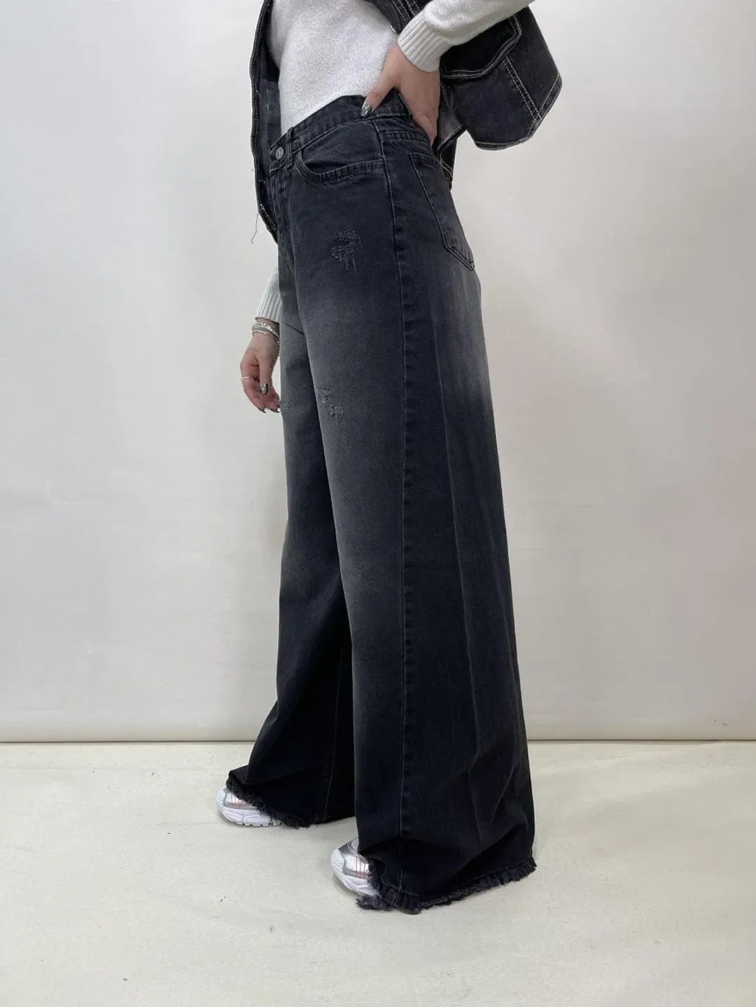 شلوار جین واید رارا جنس : جین ترک رنگبندی سایزبندی زنانه