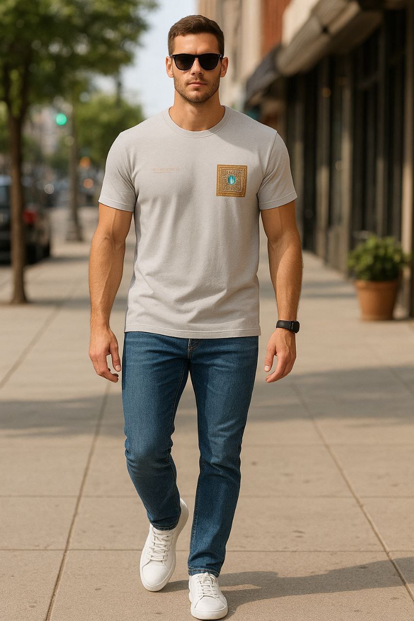 تیشرت مردانه چاپ سنتی جنس : پنبه سوپر درجه یک طوسی , نسکافهای , خردلی , فری سایز