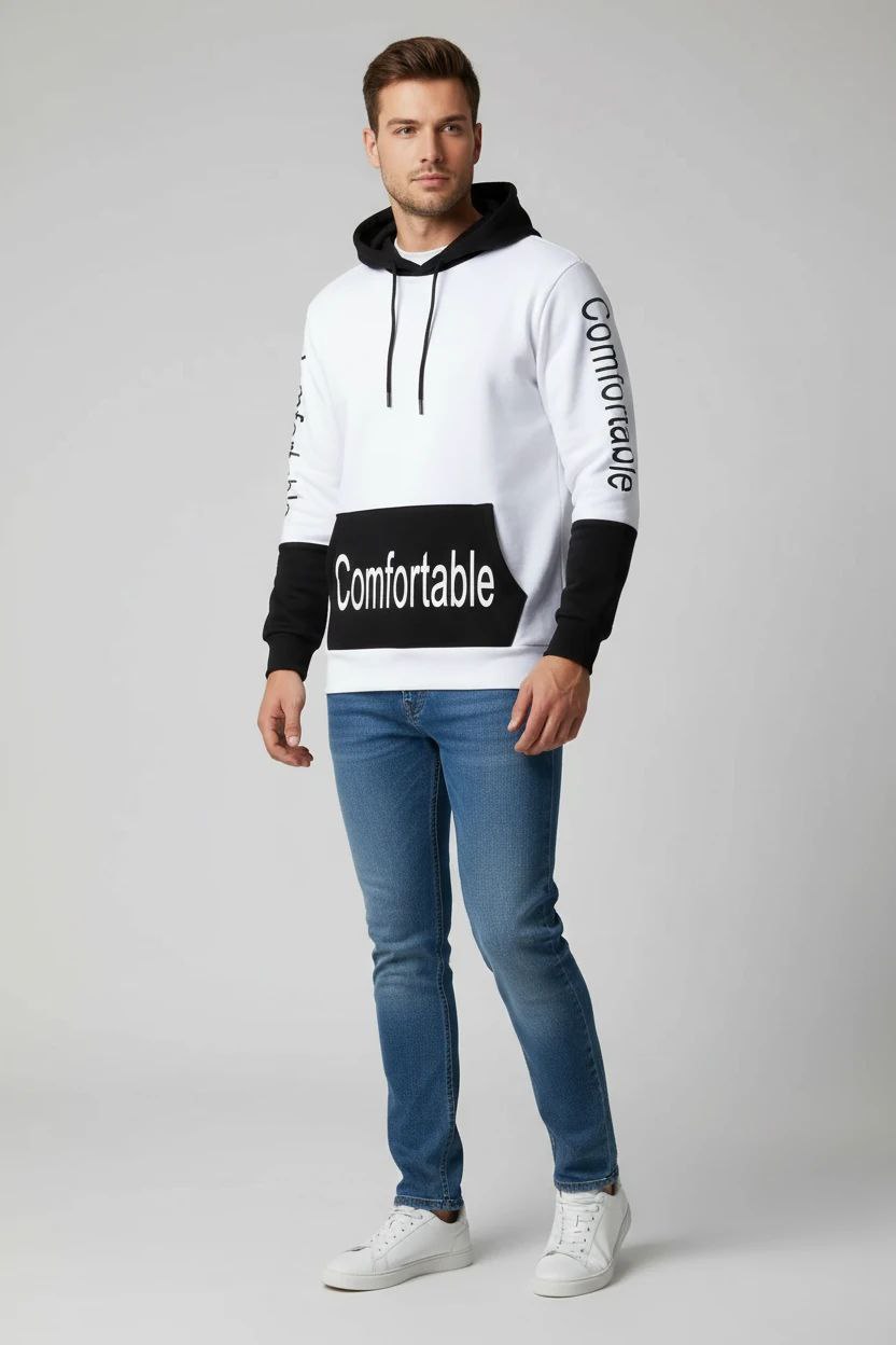 هودی اسپرت کامفور جنس : پنبه دورس درجه یک سفید فری سایز مردانه