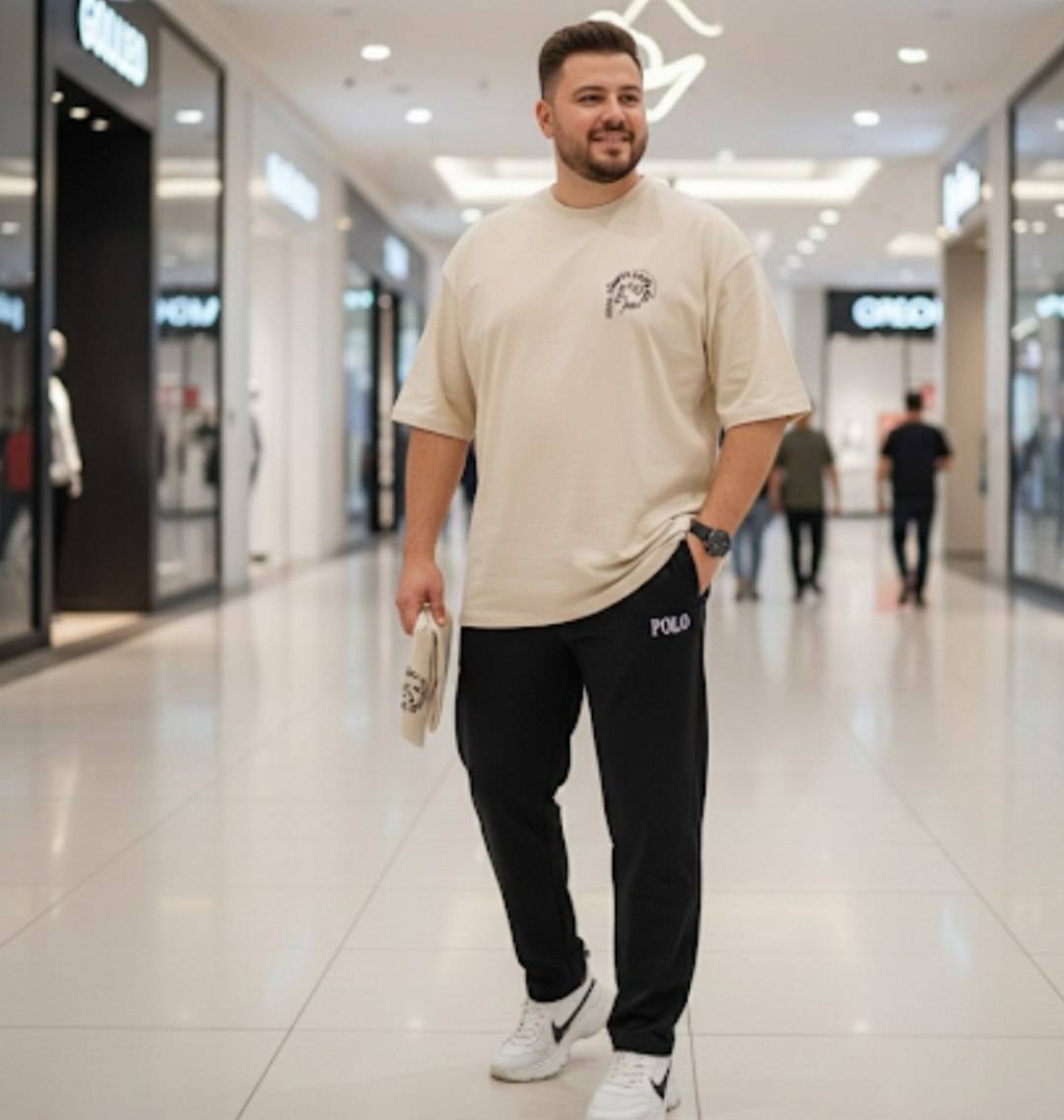 ست تیشرت شلوار بیسکوییتی طرح دونایک جنس : بیسکویتی نسکافه - سرمه - مشکی - طوسی - سدری - سایزبندی مردانه