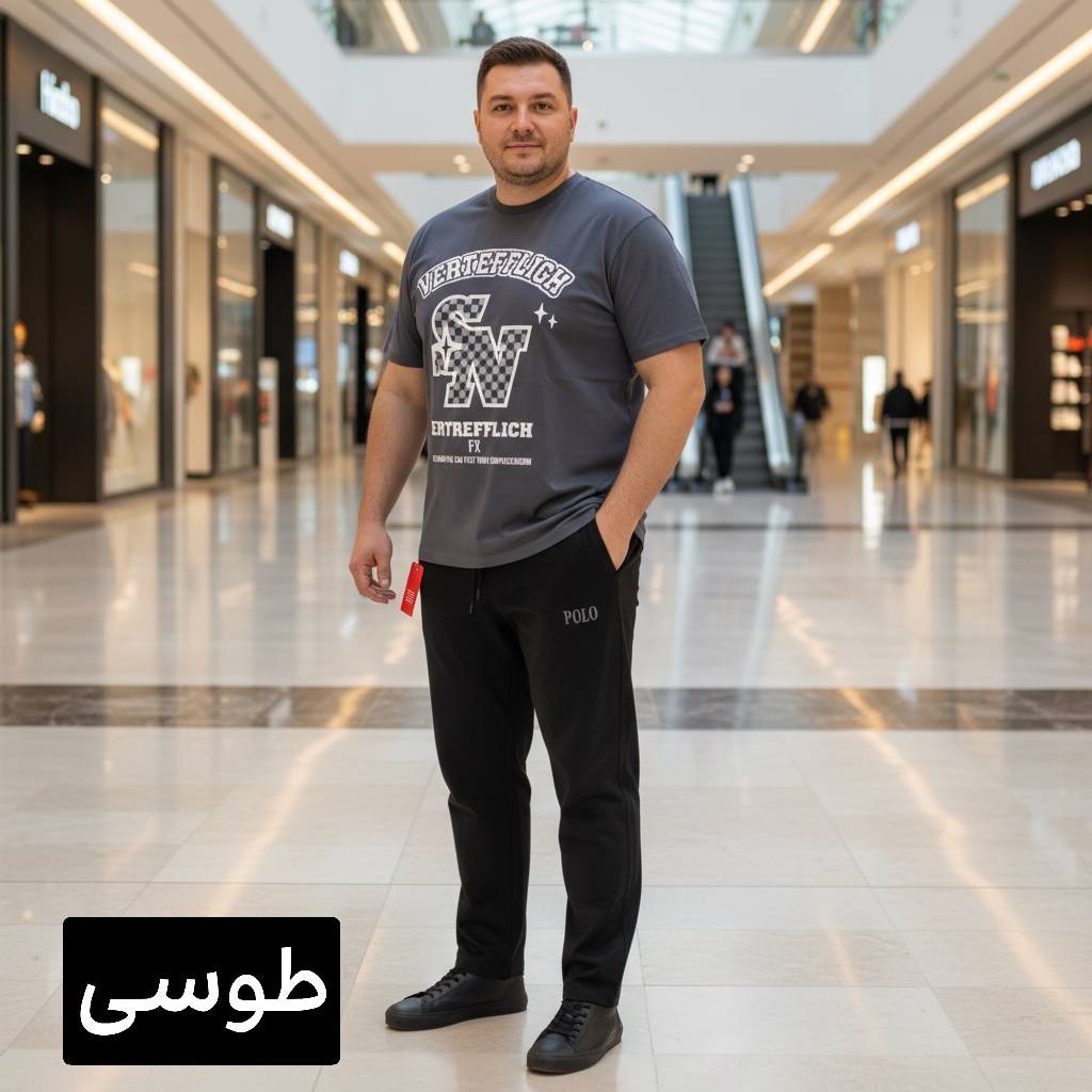 ست مردانه تیشرت شلوار دورنگ - پارچه بیسکوییتی- رنگبندی - سایزبندی