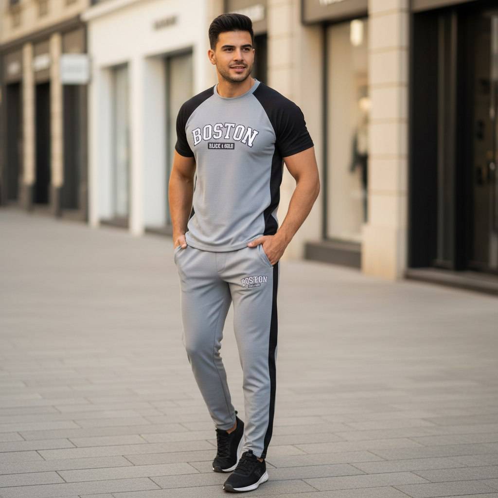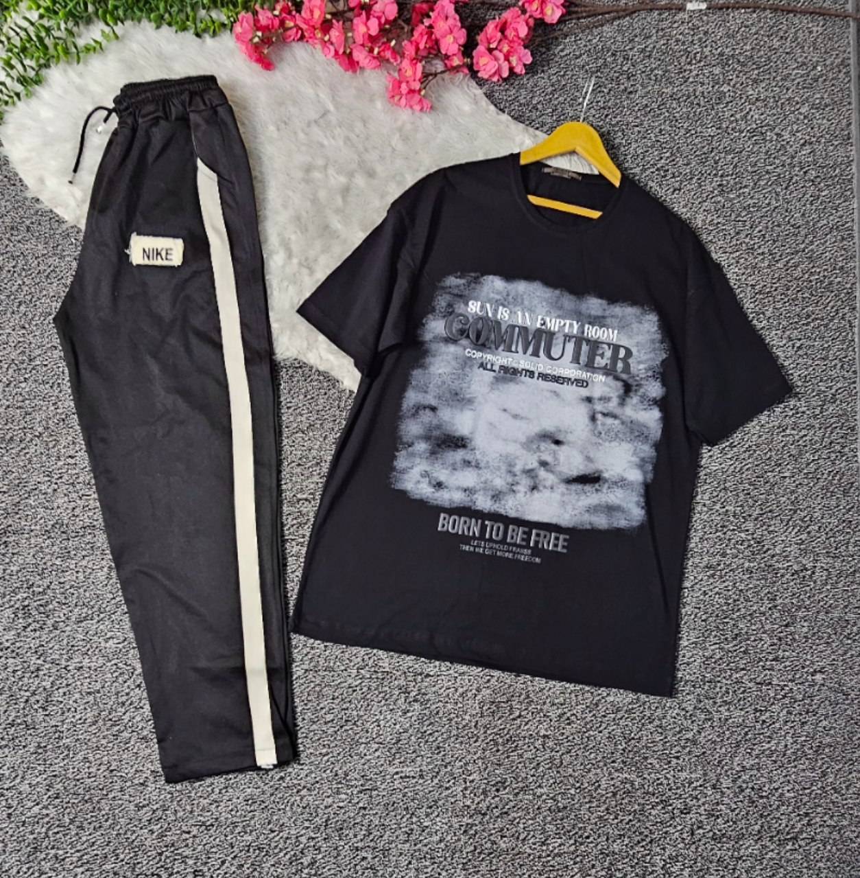 ست مردانه commuter جنس : تیشرت پنبه سوپر اعلا شلوار تک نوار مشکی, کرم, سرمه, یشمی سایزبندی
