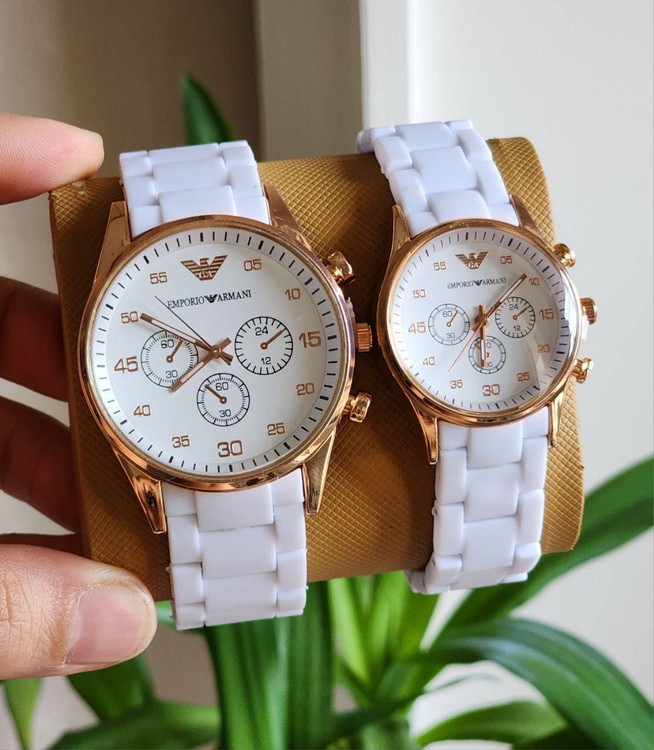 👚نام : ست ساعت مردانه و زنانه با هم امپریو آرمانی بند پیو.. سفید قاب رزگلد