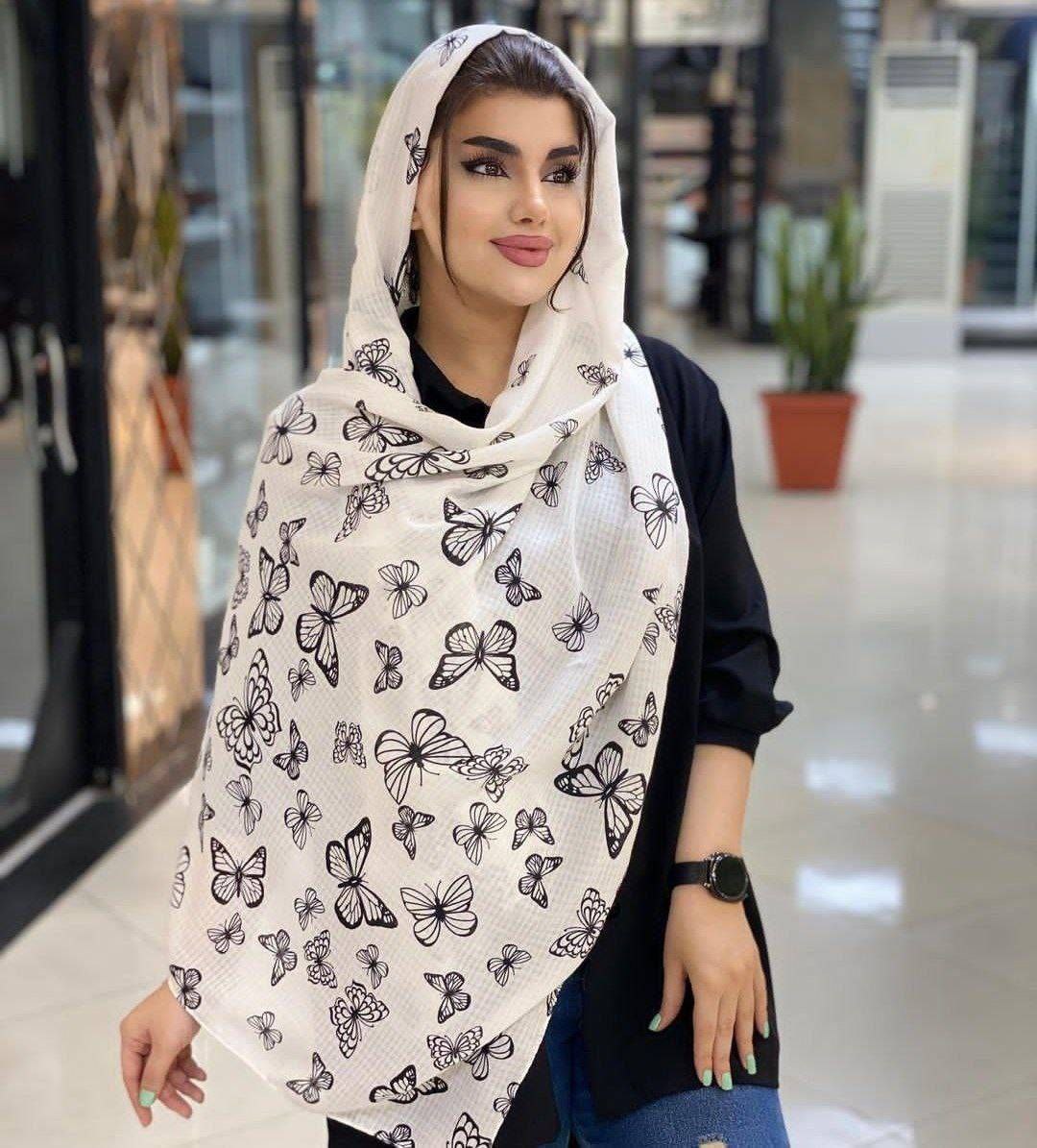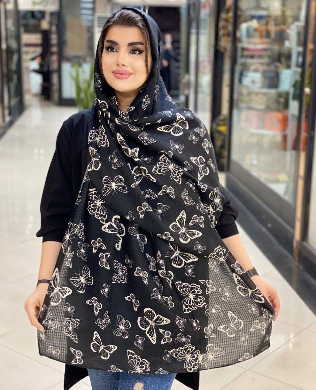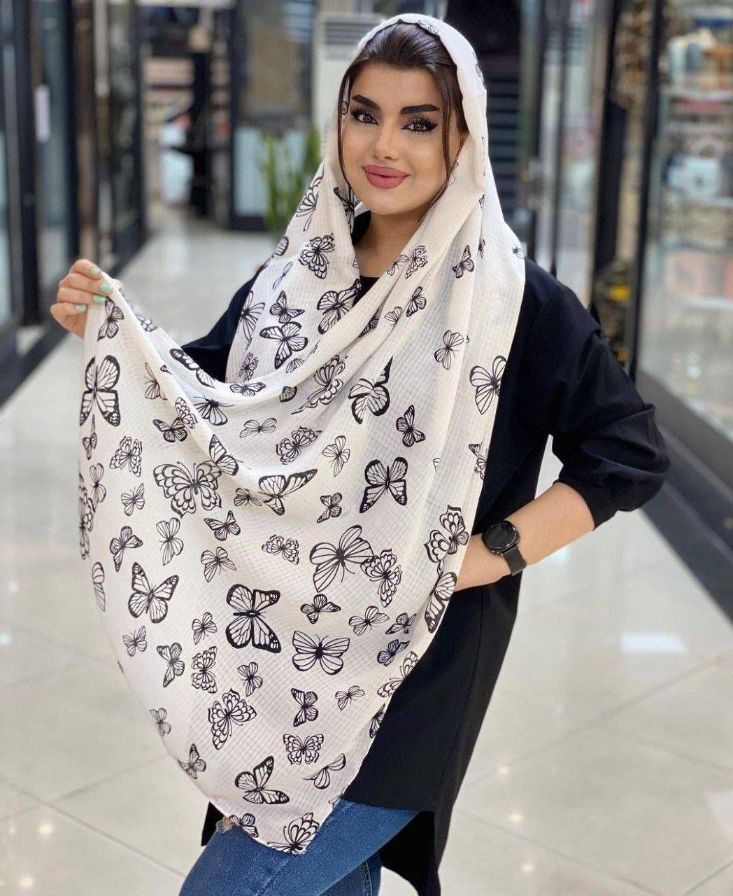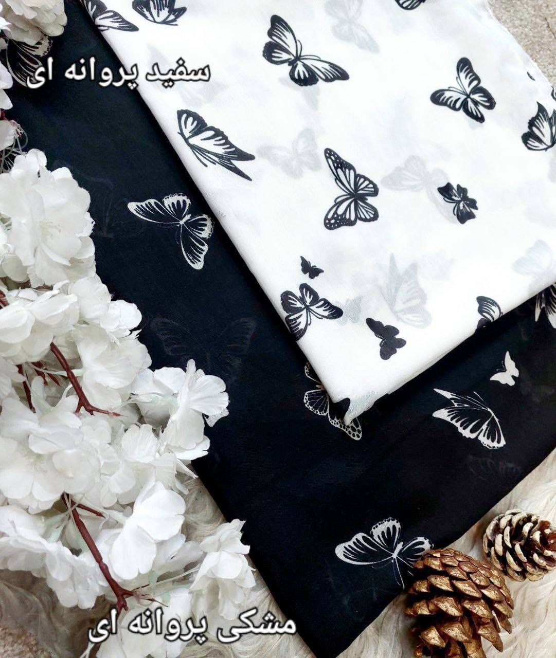 شال بهاران جنس : تمام نخ سفید پروانه ای, مشکی پروانه ای