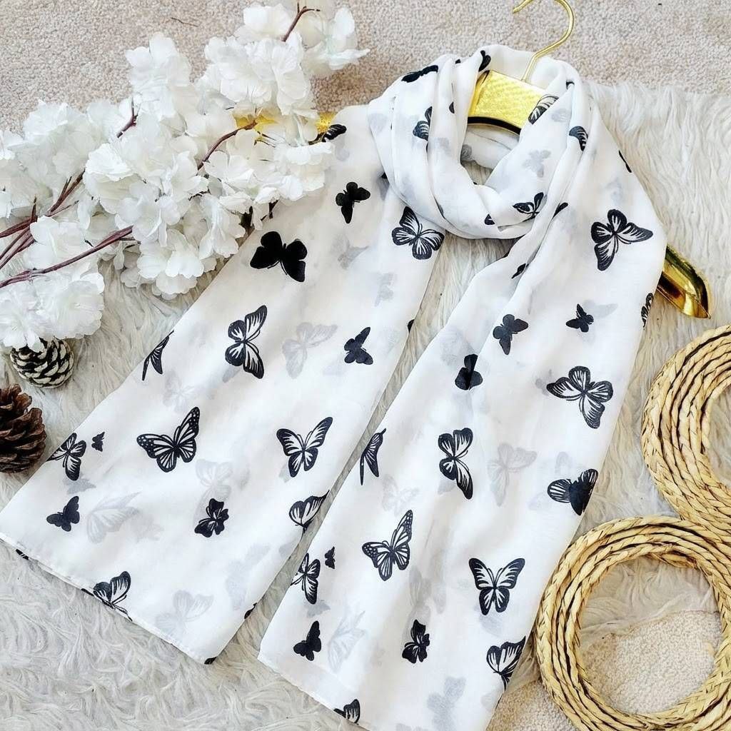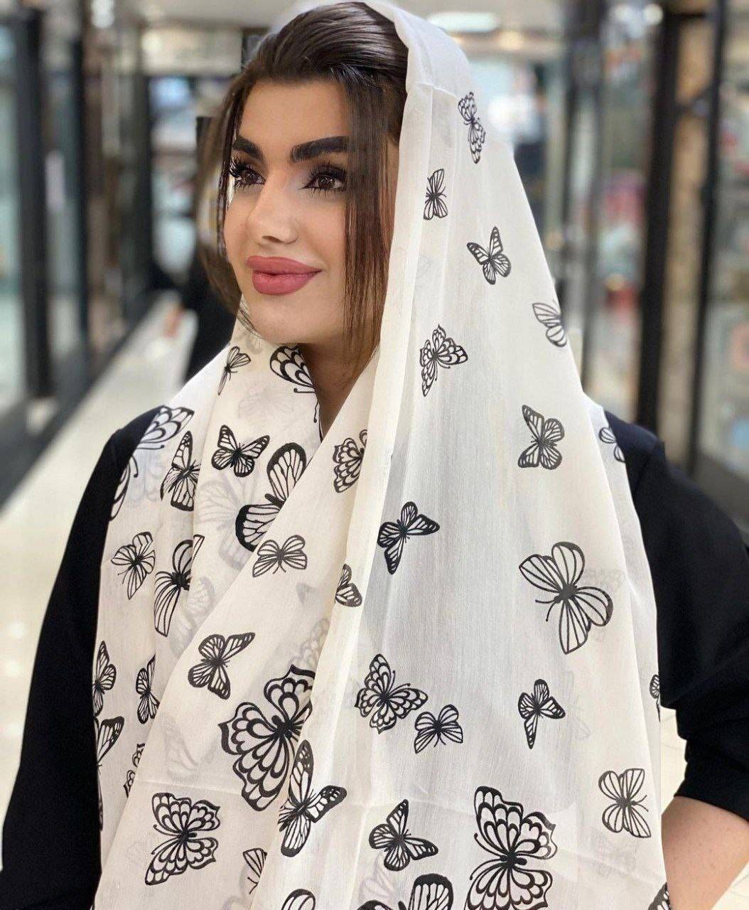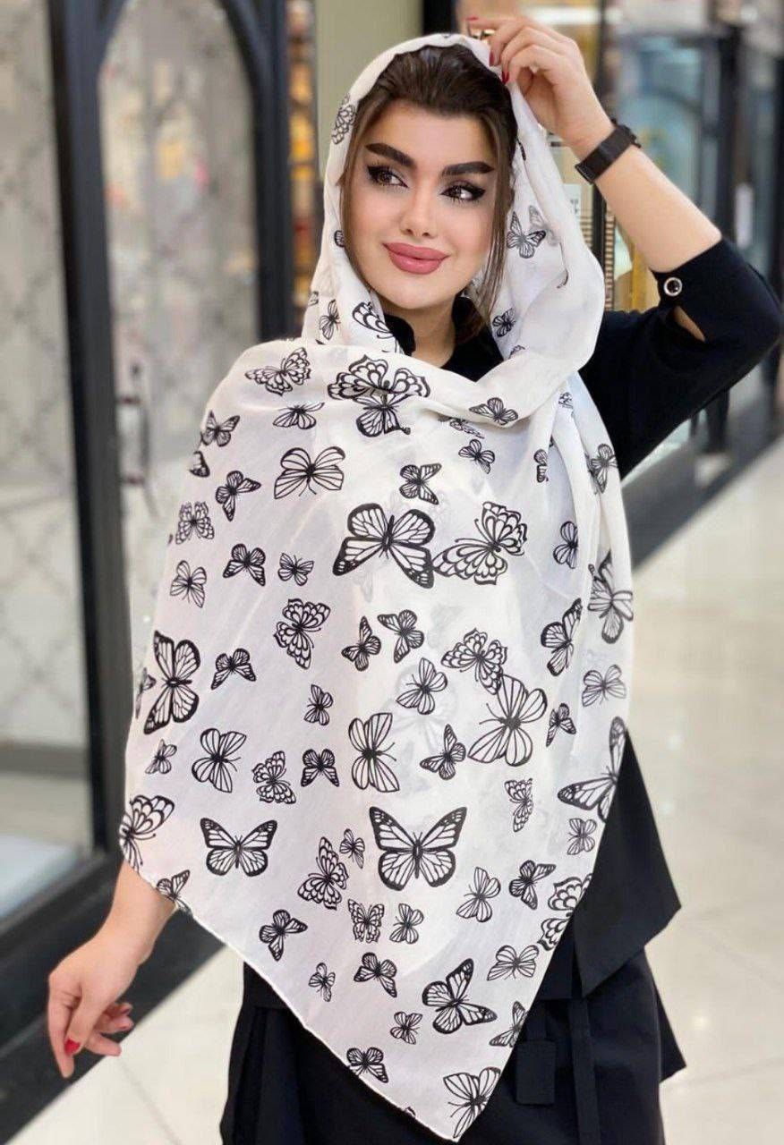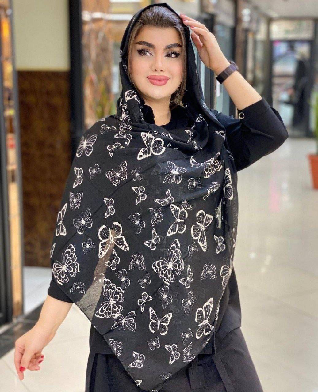 شال بهاران جنس : تمام نخ سفید پروانه ای, مشکی پروانه ای