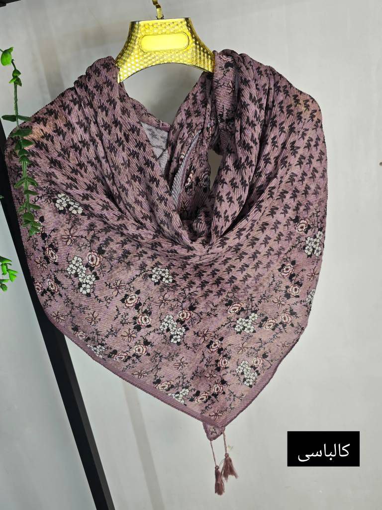روسری جوانه جنس : برشکا سافت پلیسه سرمه, شکلاتی, طوسی تیره, طوسی خاکی, کالباسی, کالباسی دودی فری سایز زنانه