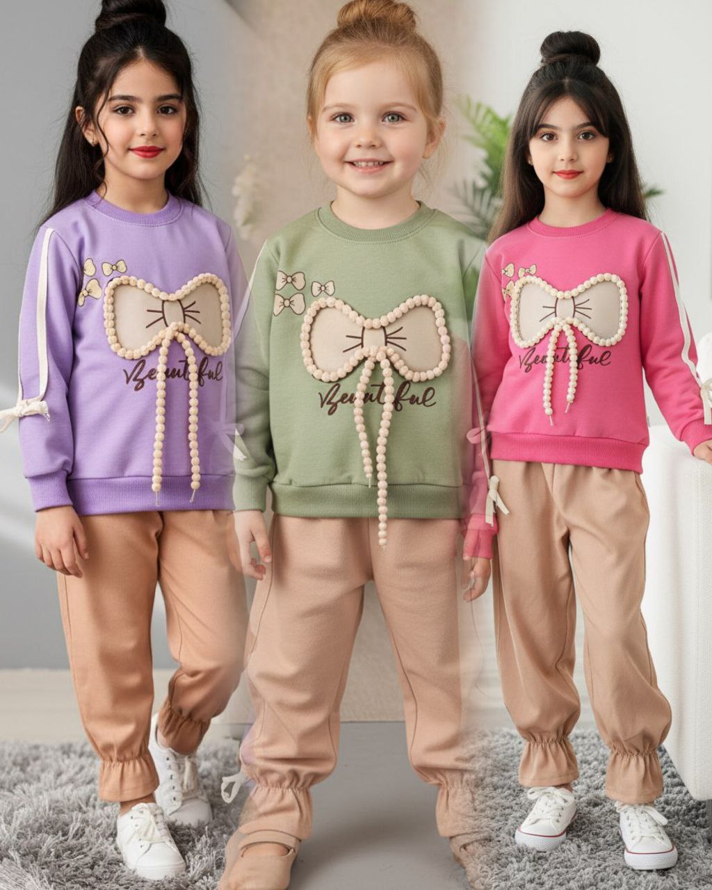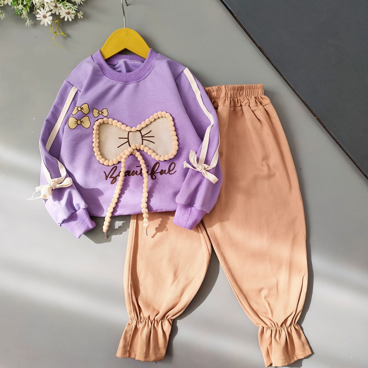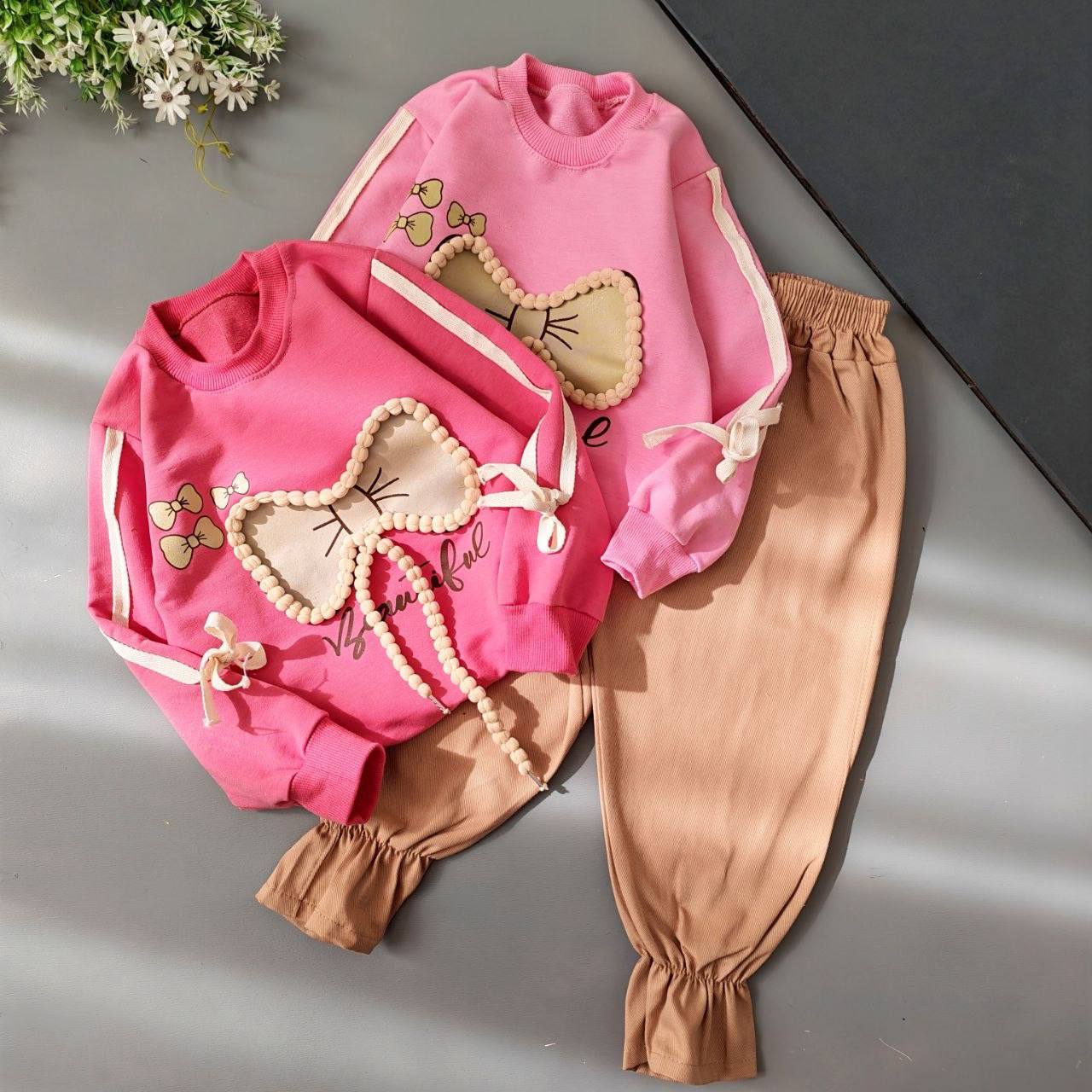 ست ترنم جنس بلوز درس پنبه عالی و شلوار کتان پنبه۳۸۰گرم بنفش, سبز, صورتی پررنگ, صورتی روشن سایزبندی بچگانه