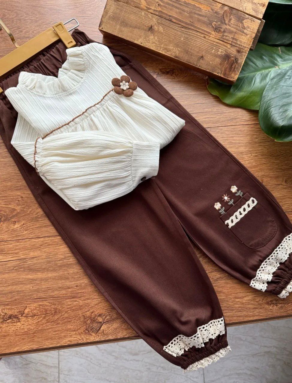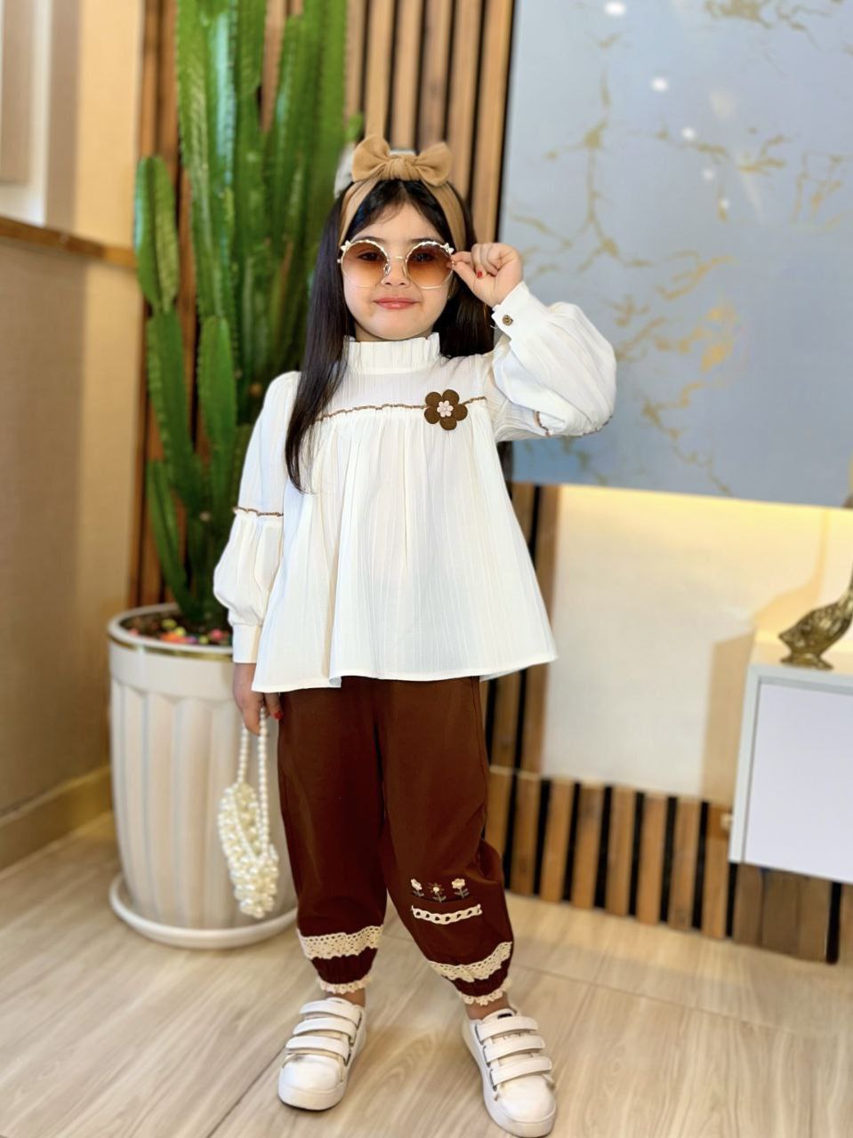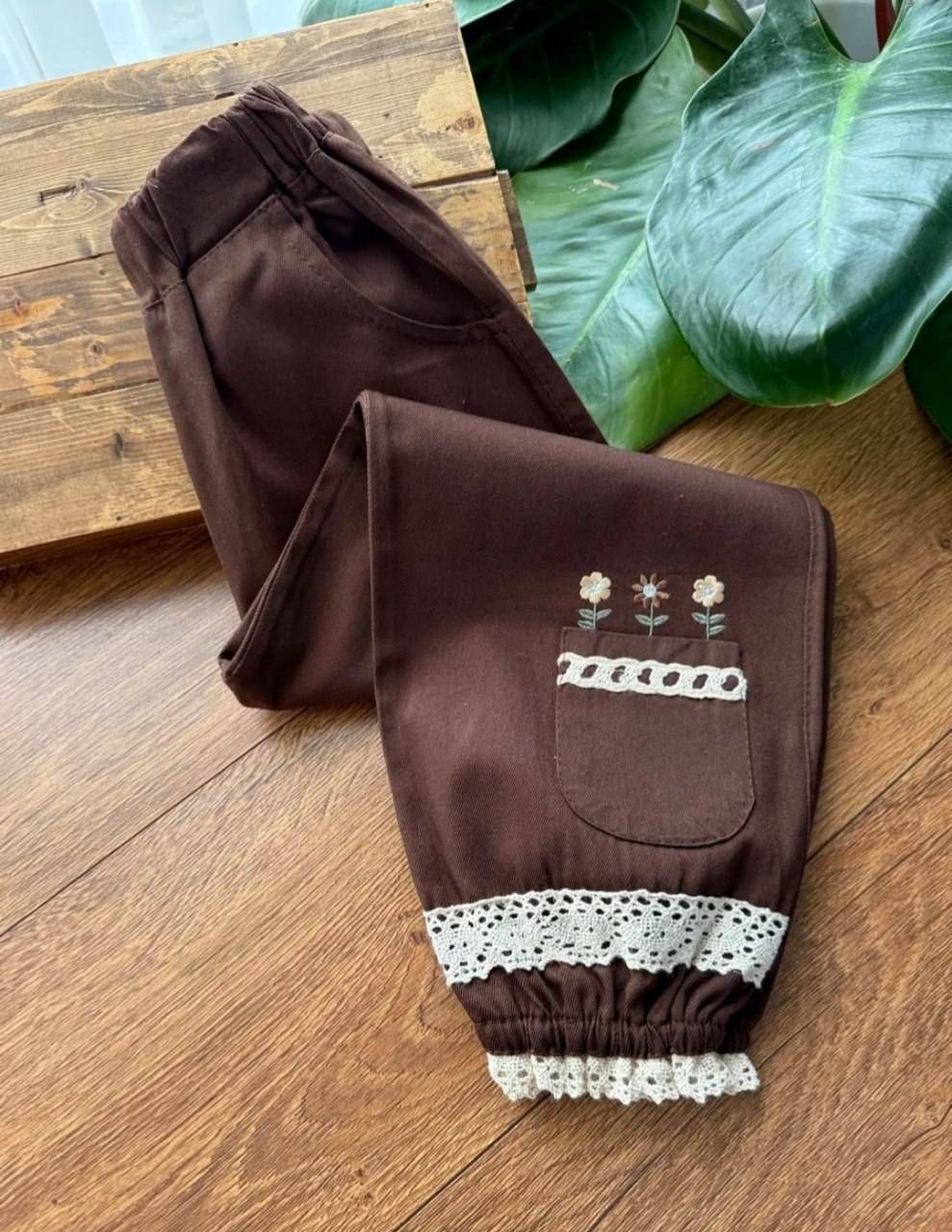 ✅روی لباس گل دوخت شده، شلوار گلدوزی دارد، نوار کتان با کیفیت کار شده، کمر شلوار کش دارد، شلوار جیب دارد.