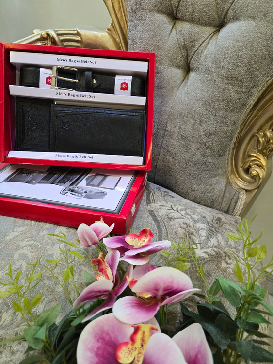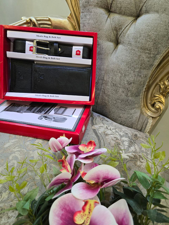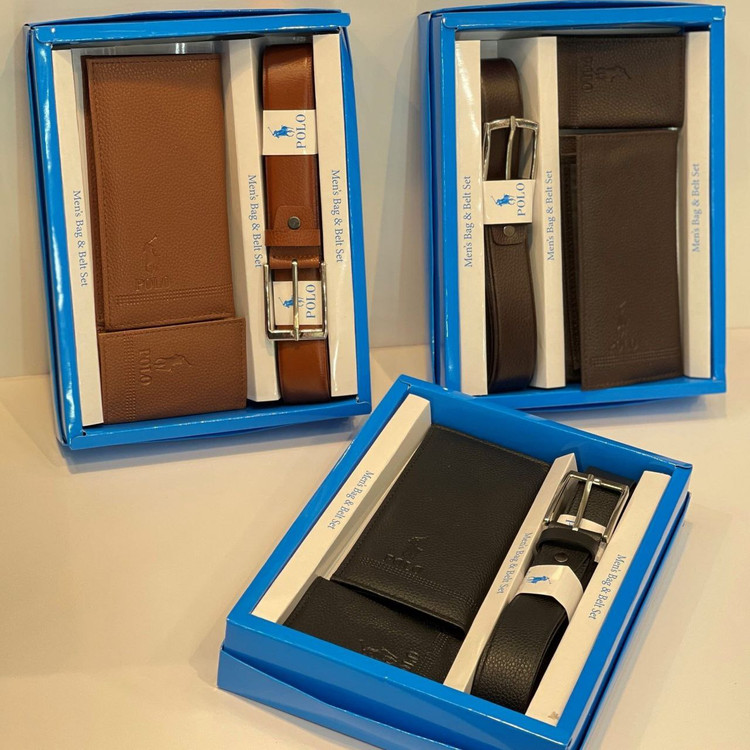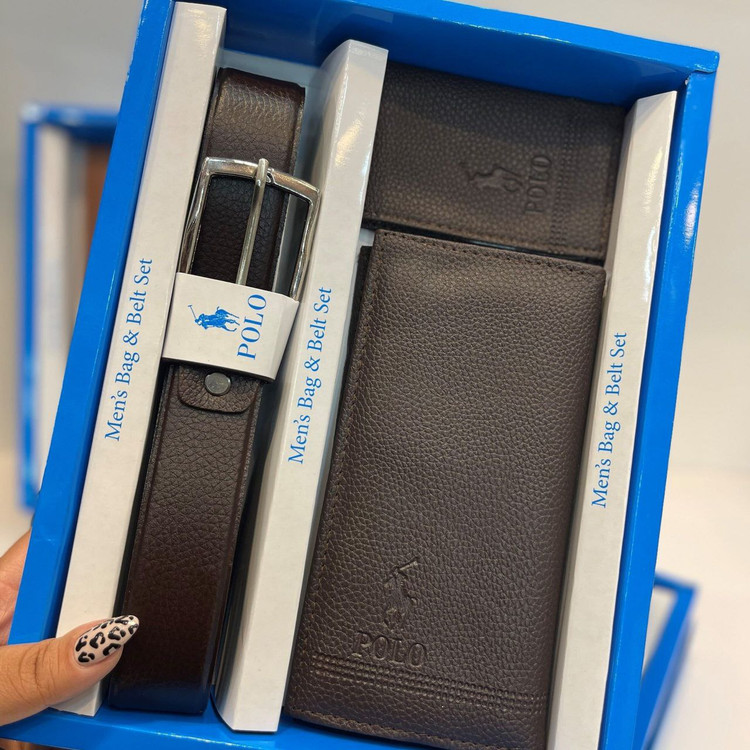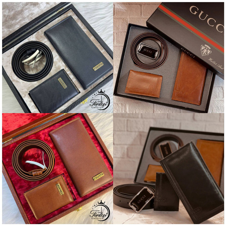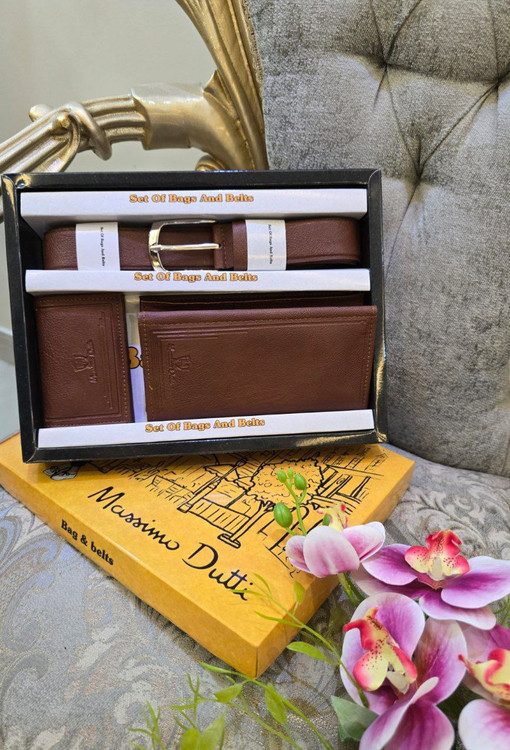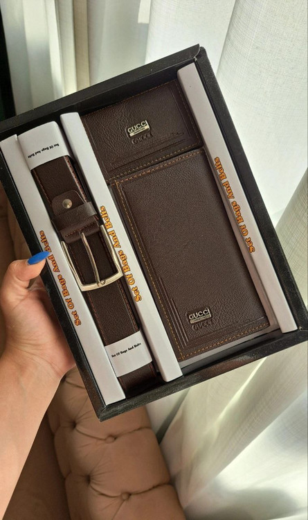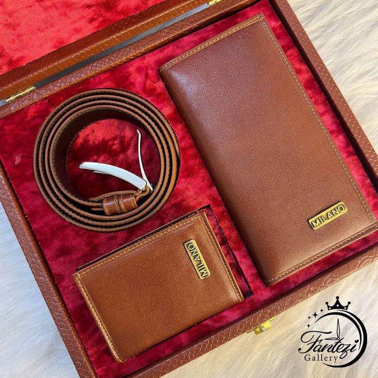 پک مردانه چرم کیف پول+کمربند+کیف کارتی