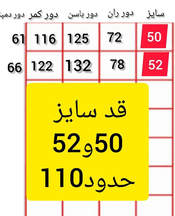 سایز 50/52 قد 103الی 108