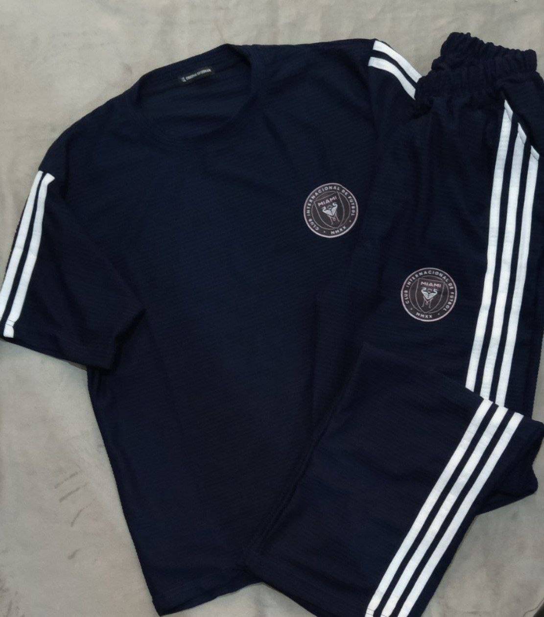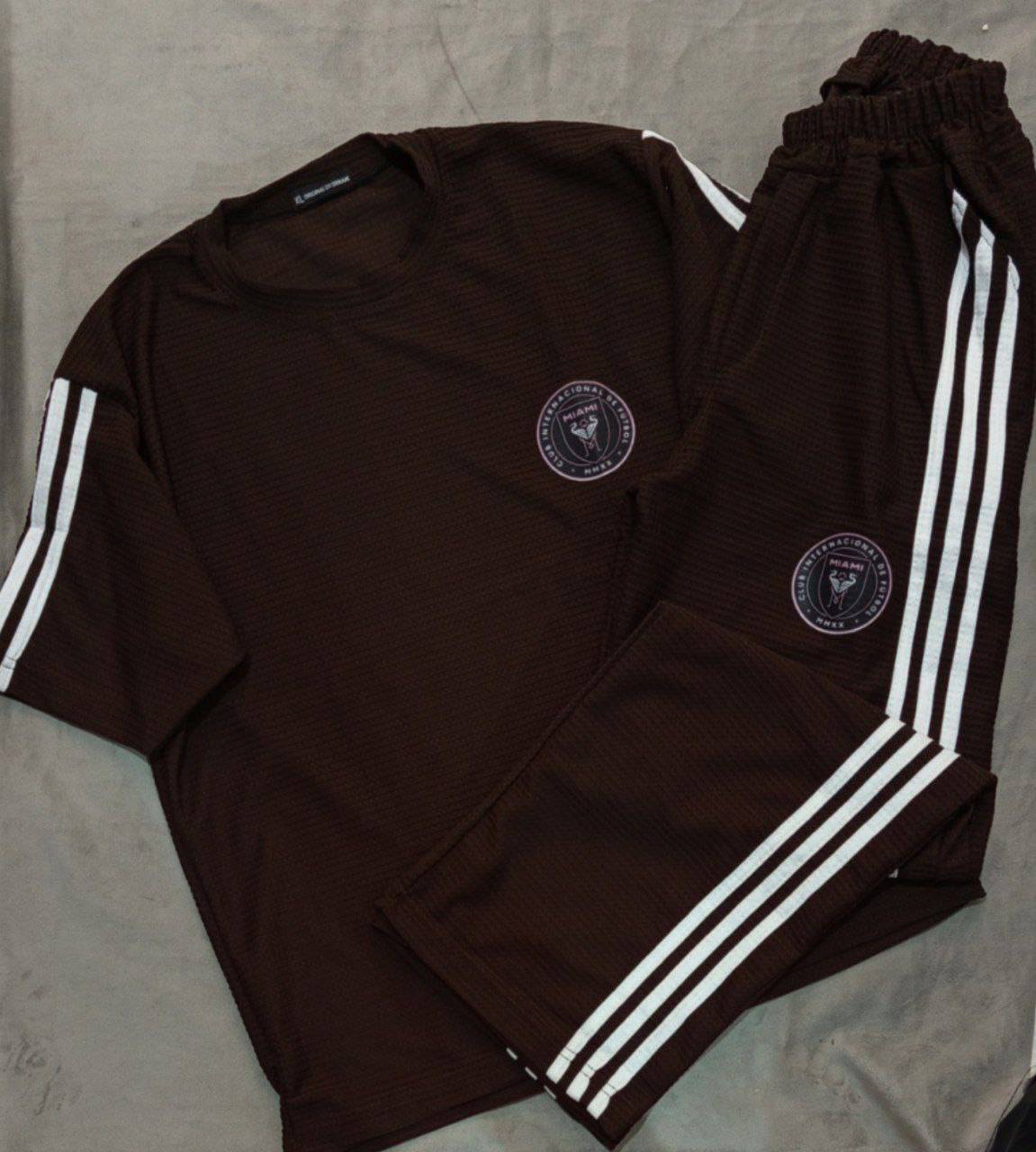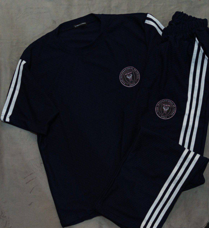 👗ست تیشرت شلوار بیسکوییتی طرح کیت باشگاهی اینتر میامی نواردوزی شده
