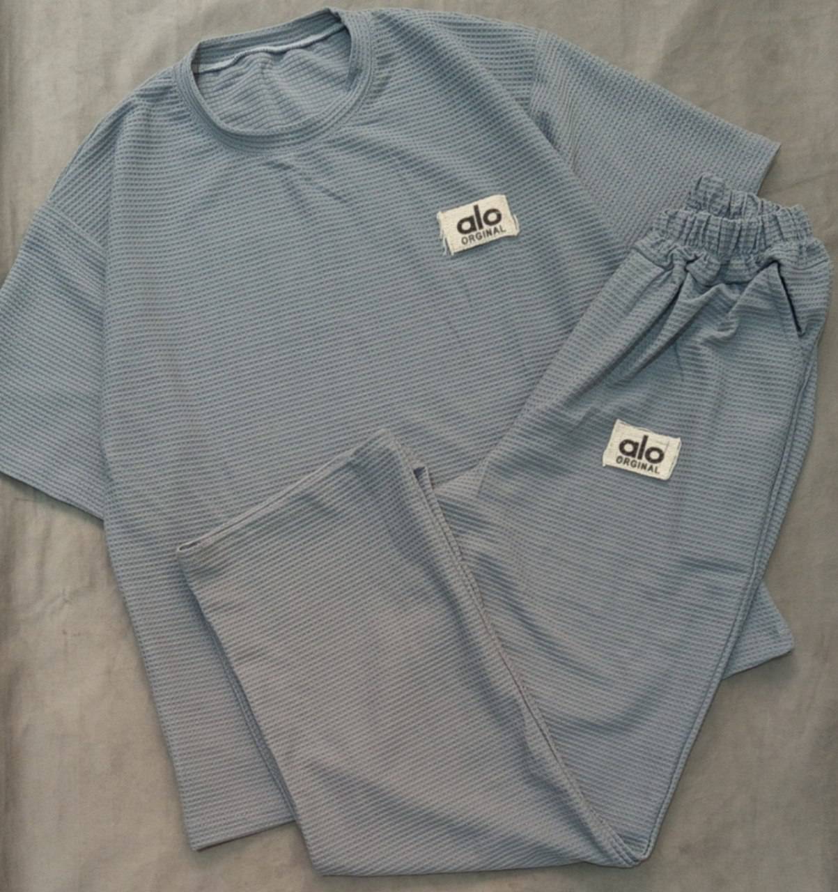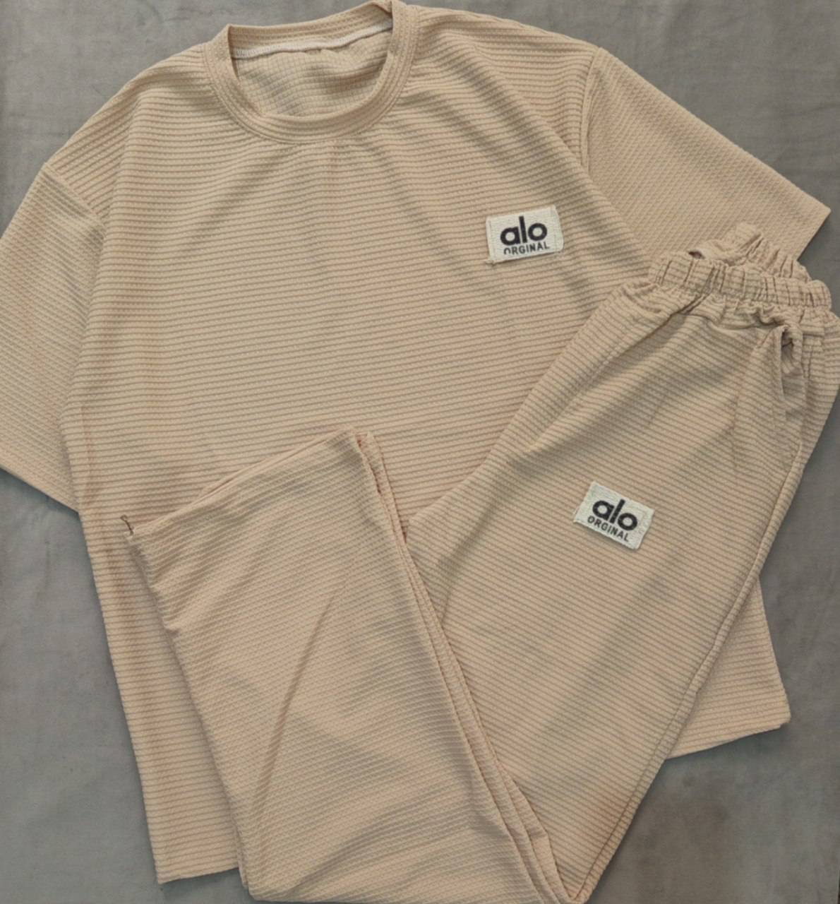 ست تیشرت شلوار طرح alo پارچه بیسکوییتی فوق العاده عالی با تنخور فوق العاده شیک و جذاااااب