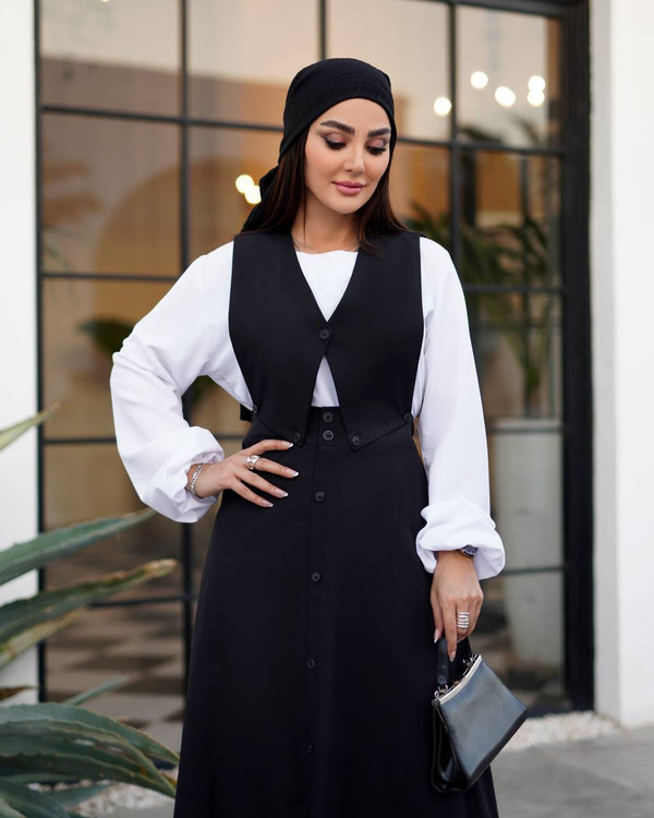 🌹توضیحات : وست کار به دو دکمه در هر طرف دامن متصل شده