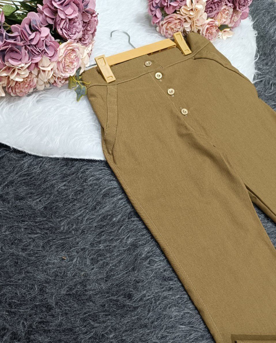 دارای فیت جذب در قسمت ران و گشاد از زانو به پایین، مناسب برای استایلهای ترند و نیمهرسمی، دوخت تمیز و جنس کتان کشی باکیفیت باعث شده این مدل هم راحتی و هم شیکپوشی رو همزمان ارائه بده