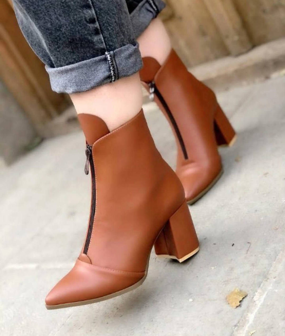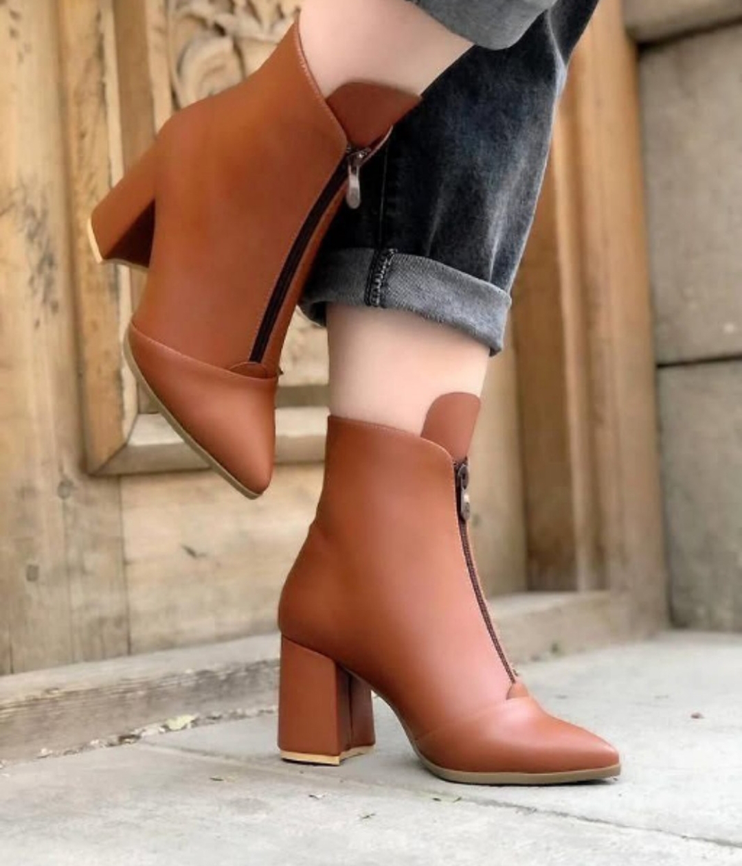 بوت پاشنه داره جلو زیپ زنانه پاشنه ۵ سانت