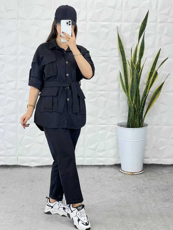 ✅قداستین۵۷✅ دوربازو۴۵ ✅دورسینه110 ✅قدشلوار۹۰ ✅دورران60✅دمپا۴۰ پشت کمر شلوار کش خورده
