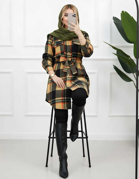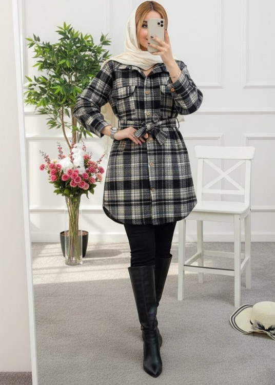 شکت کمربنددارپشمی جنس : پشمی خارجی زنانه رنگ بندی دارد
