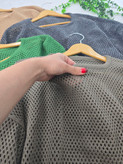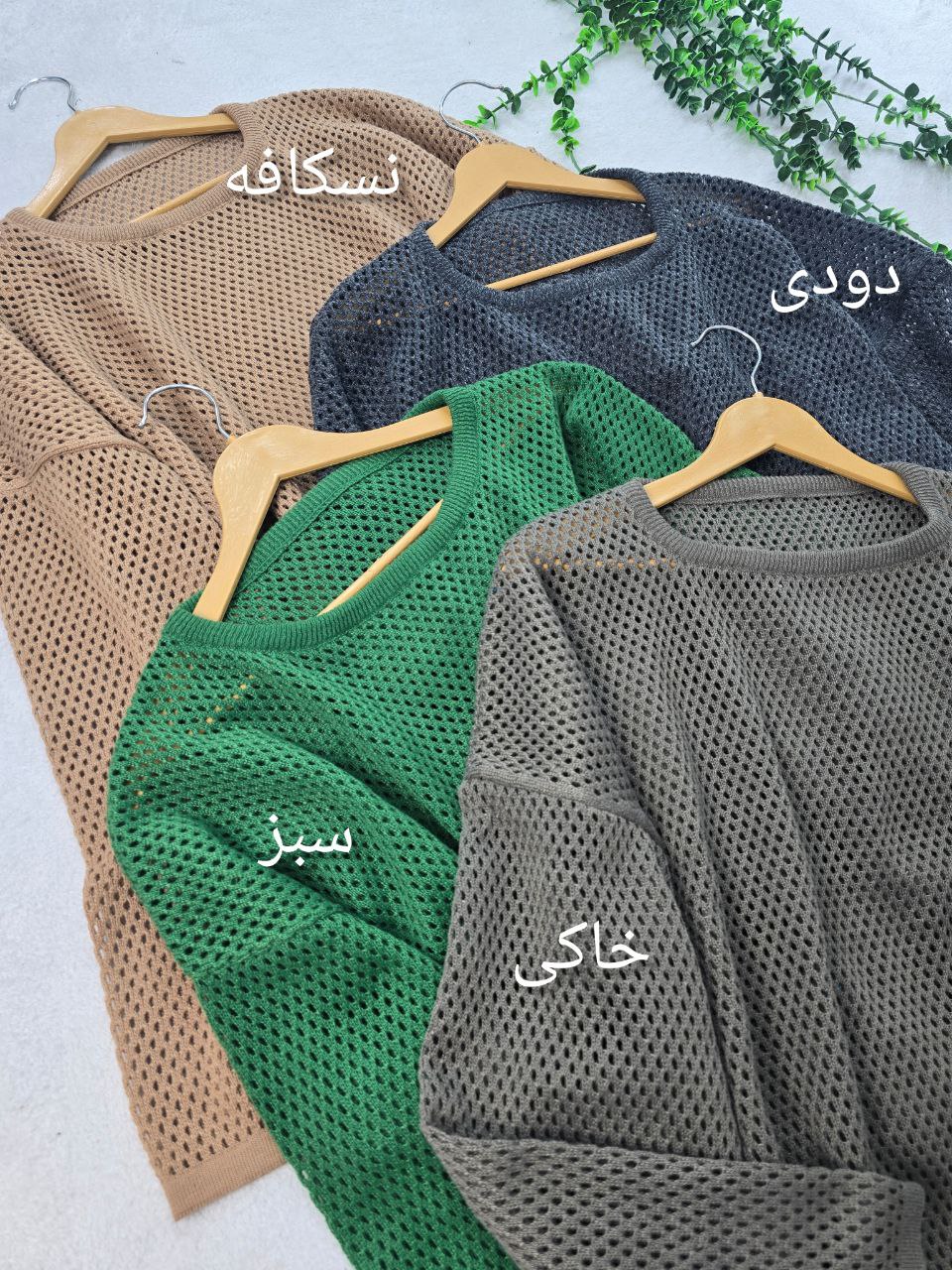 🍁 نام : بلوز زنبوری 🍁جنس : بافت زنبوری رنگ بندی : بنفش, خاکی, دودی, سبز, سفید, شبرنگ, طوسی, مشکی, نسکافه سایز ها : فری 36-46