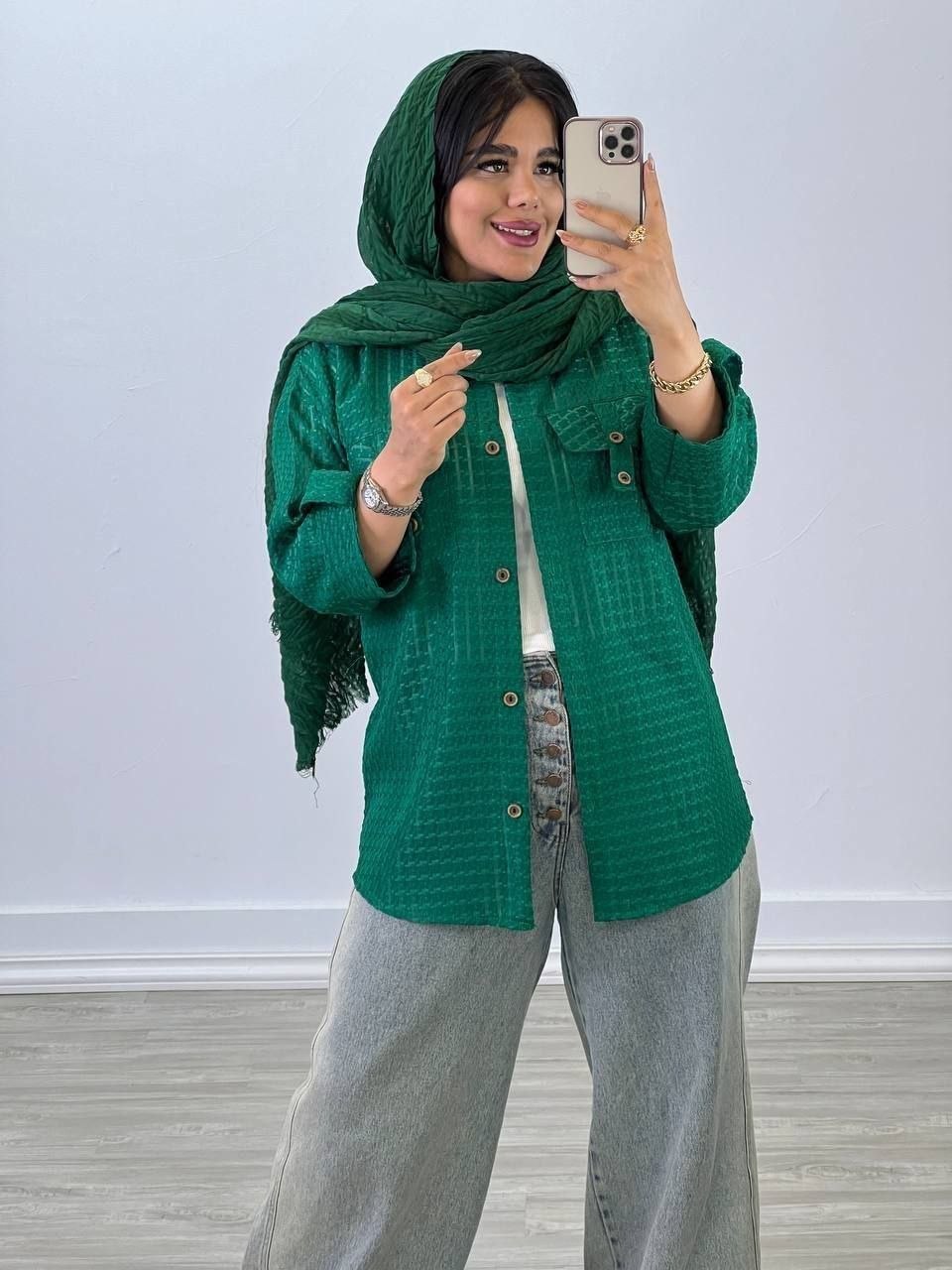 شومیز مانتویی حصیری زنانه: حصیری درجه یک رنگ سبز, سفید, طوسی, مشکی, نسکافه ای سایز فری(38-46)