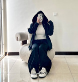 ست سویشرت شلوار بگ جنس : پنبه داخل کرکی مشکی , طوسی , فری سایز زنانه مردانه