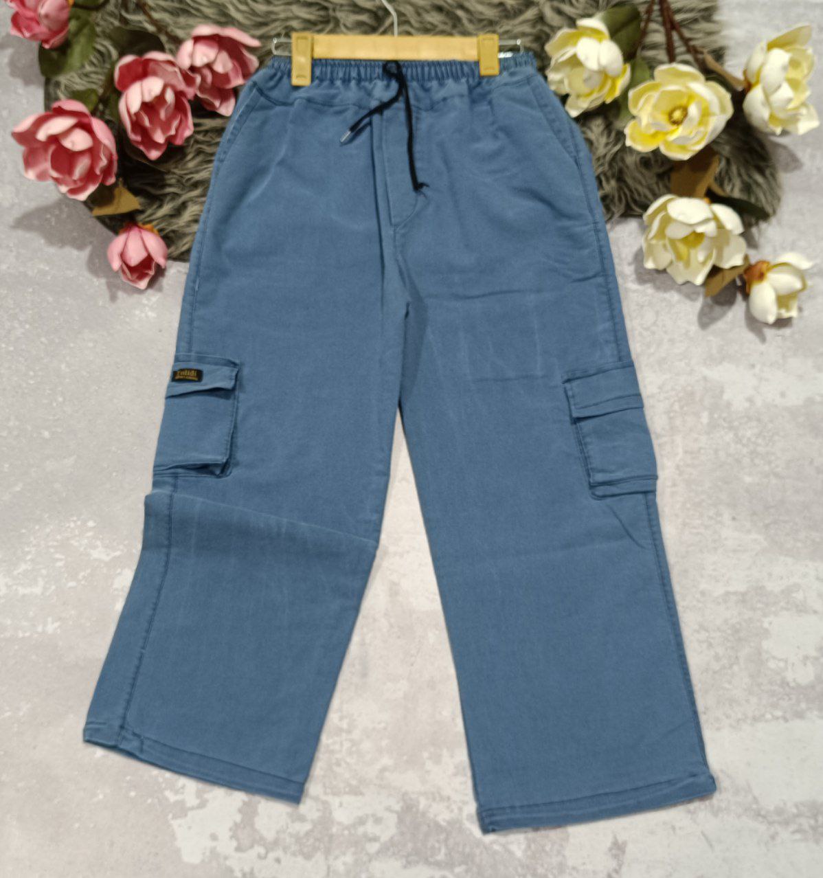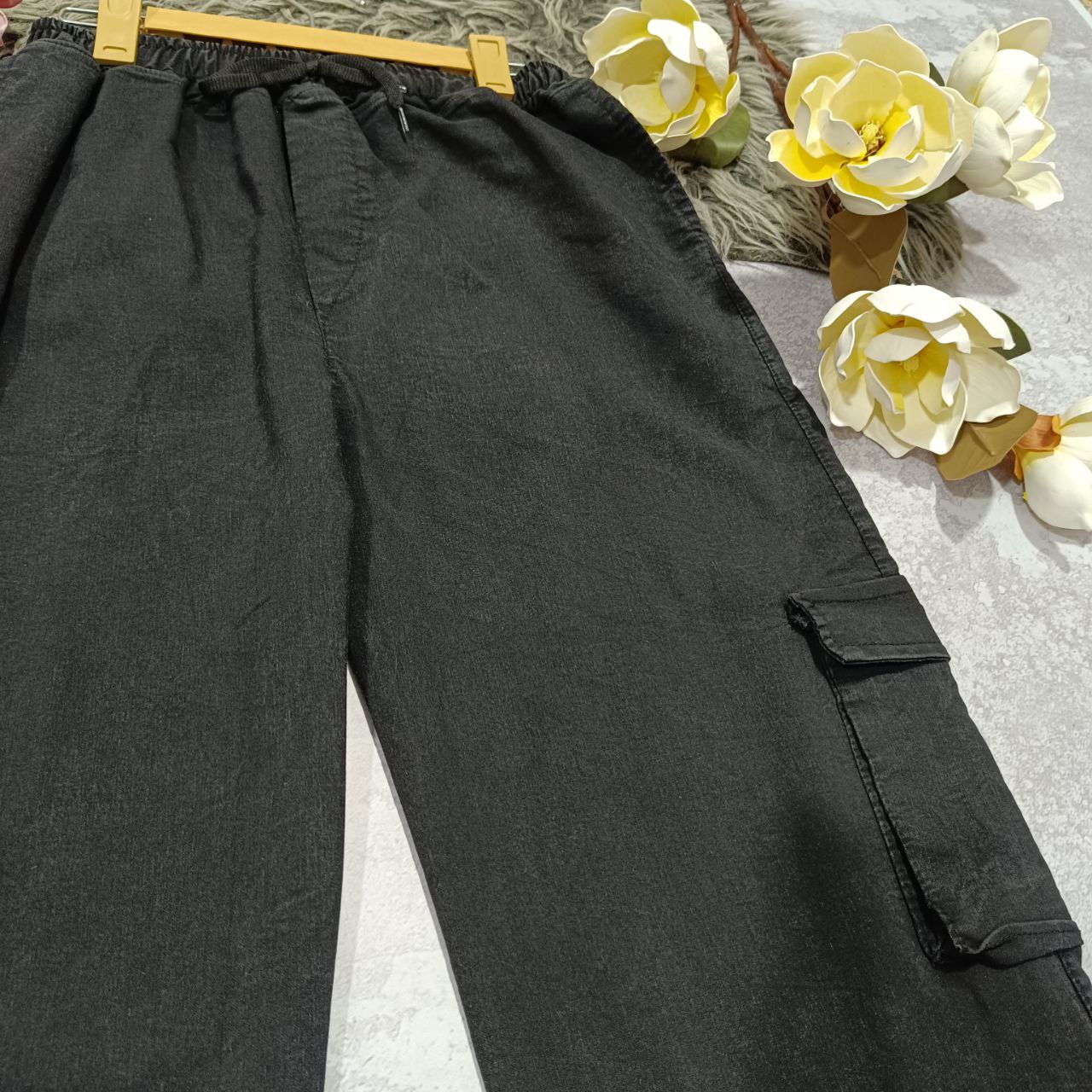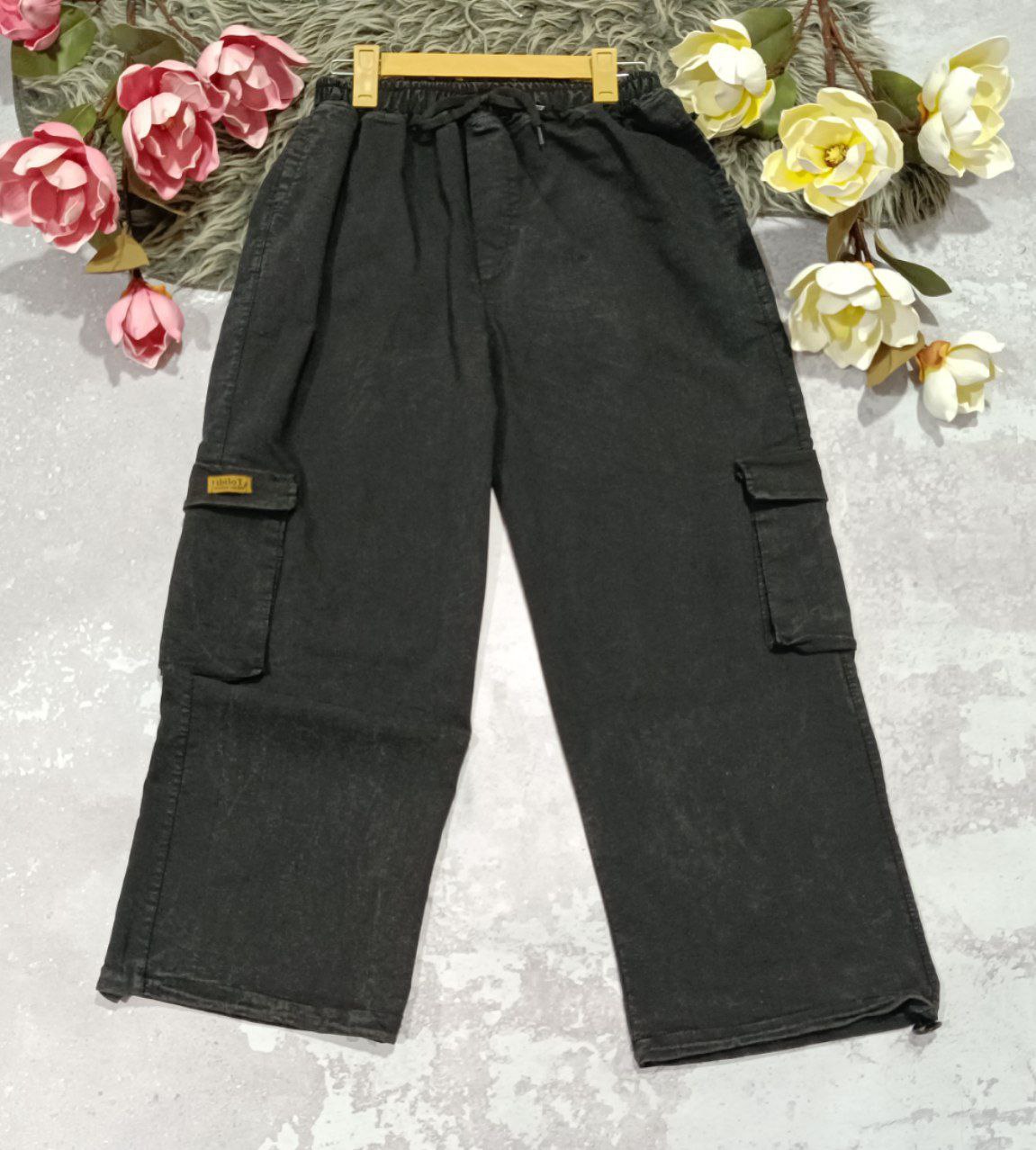 شلوار بگ جیب دار جنس : نیل سنگشور ذغالی - آبی فری سایز زنانه مردانه