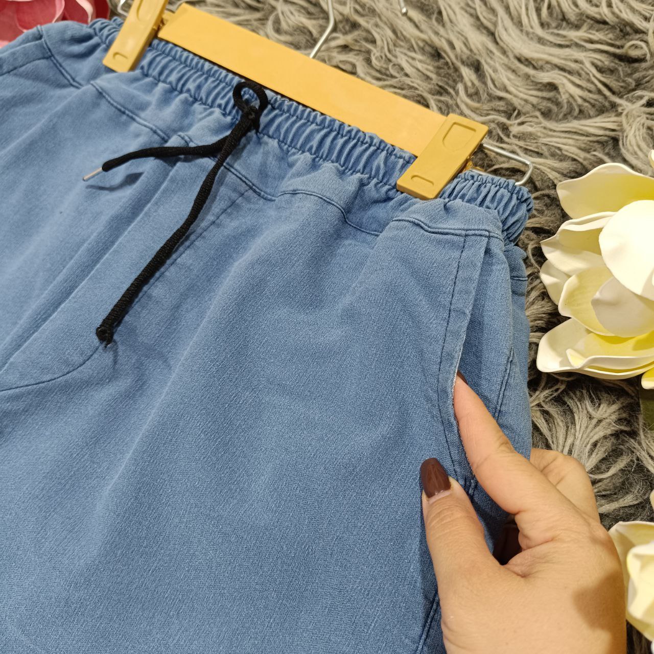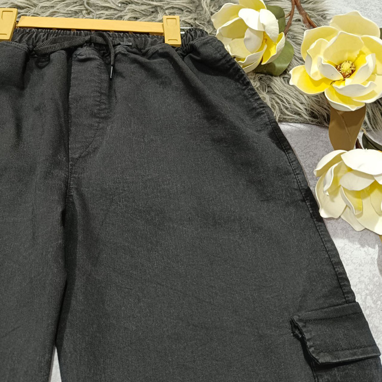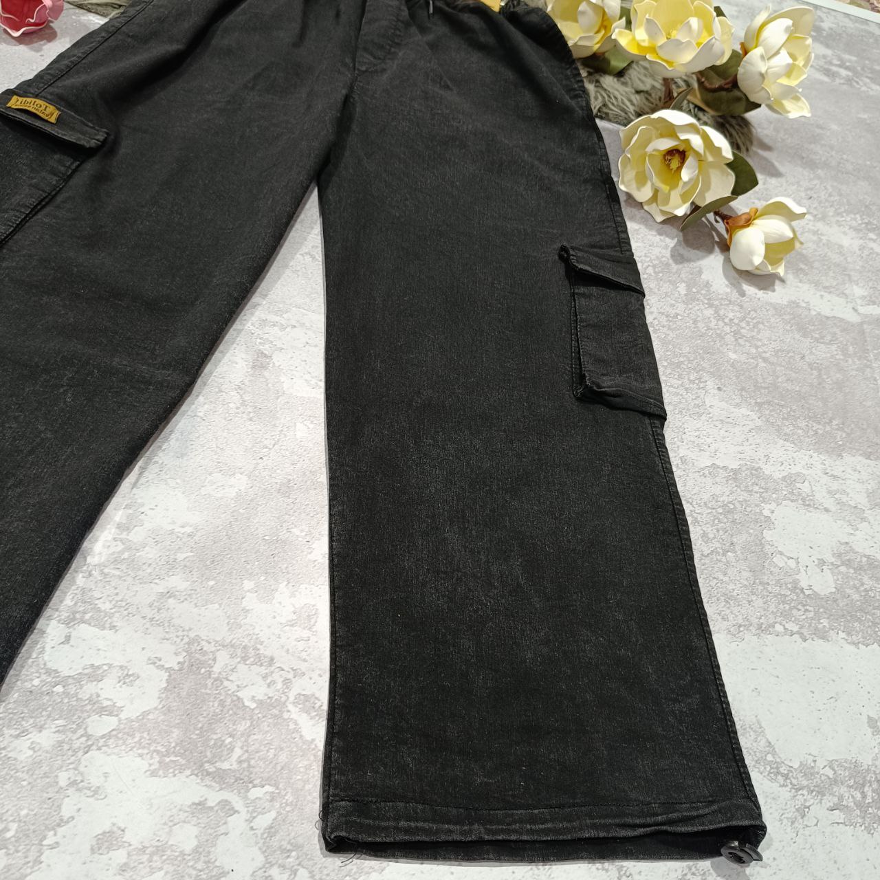 شلوار بگ جیب دار جنس : نیل سنگشور ذغالی - آبی فری سایز زنانه مردانه