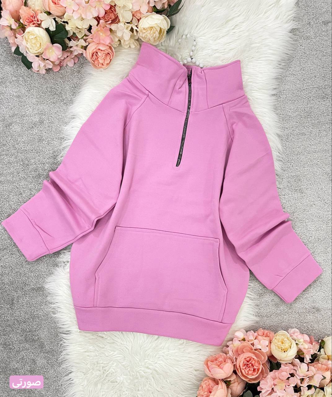 🍭 دورس نیم زیپ یقه آزاد داخل کرکی ساده✨