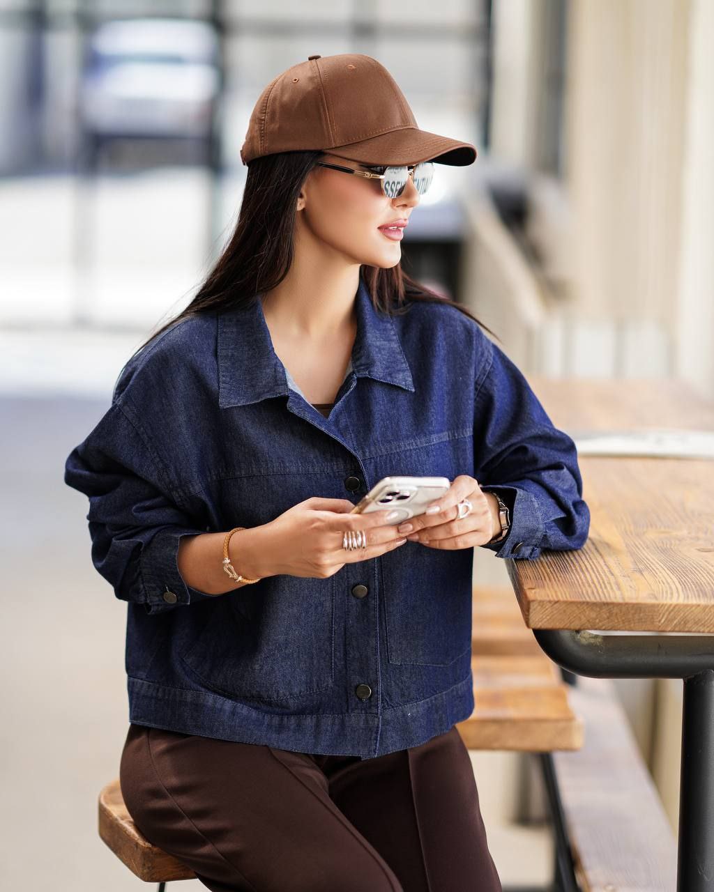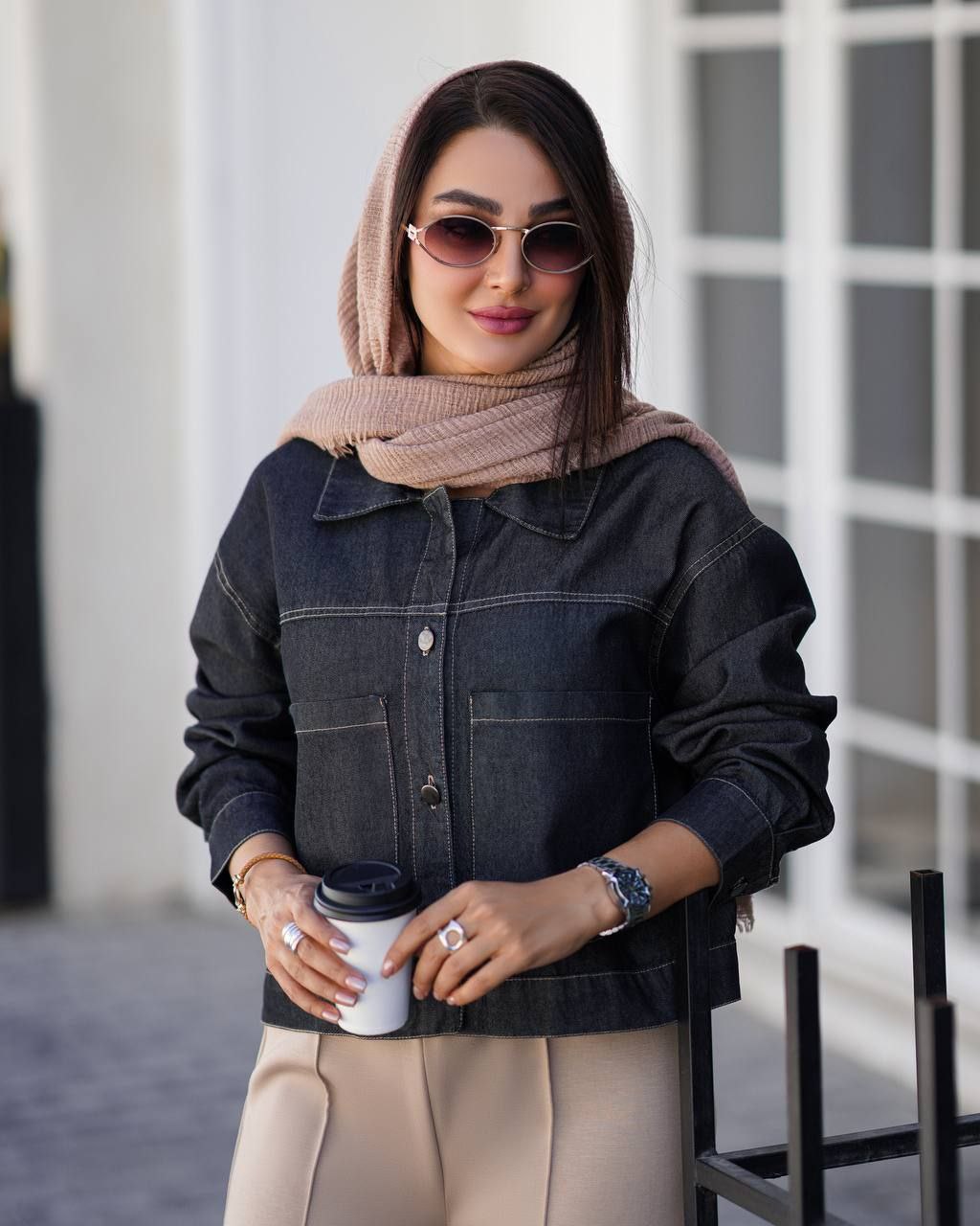 : کراپ کت ساغر جنس : جین 400 گرم  آبی, ذغالی فری سایز زنانه