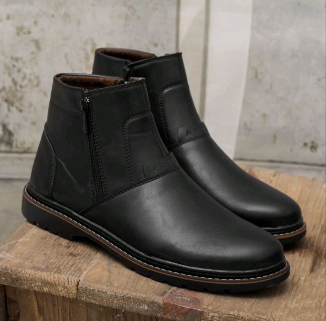 نیم بوت مردانه مدل دو زیپ جنس : چرم صنعتی لکسوس مشکی سایز 40 تا 44