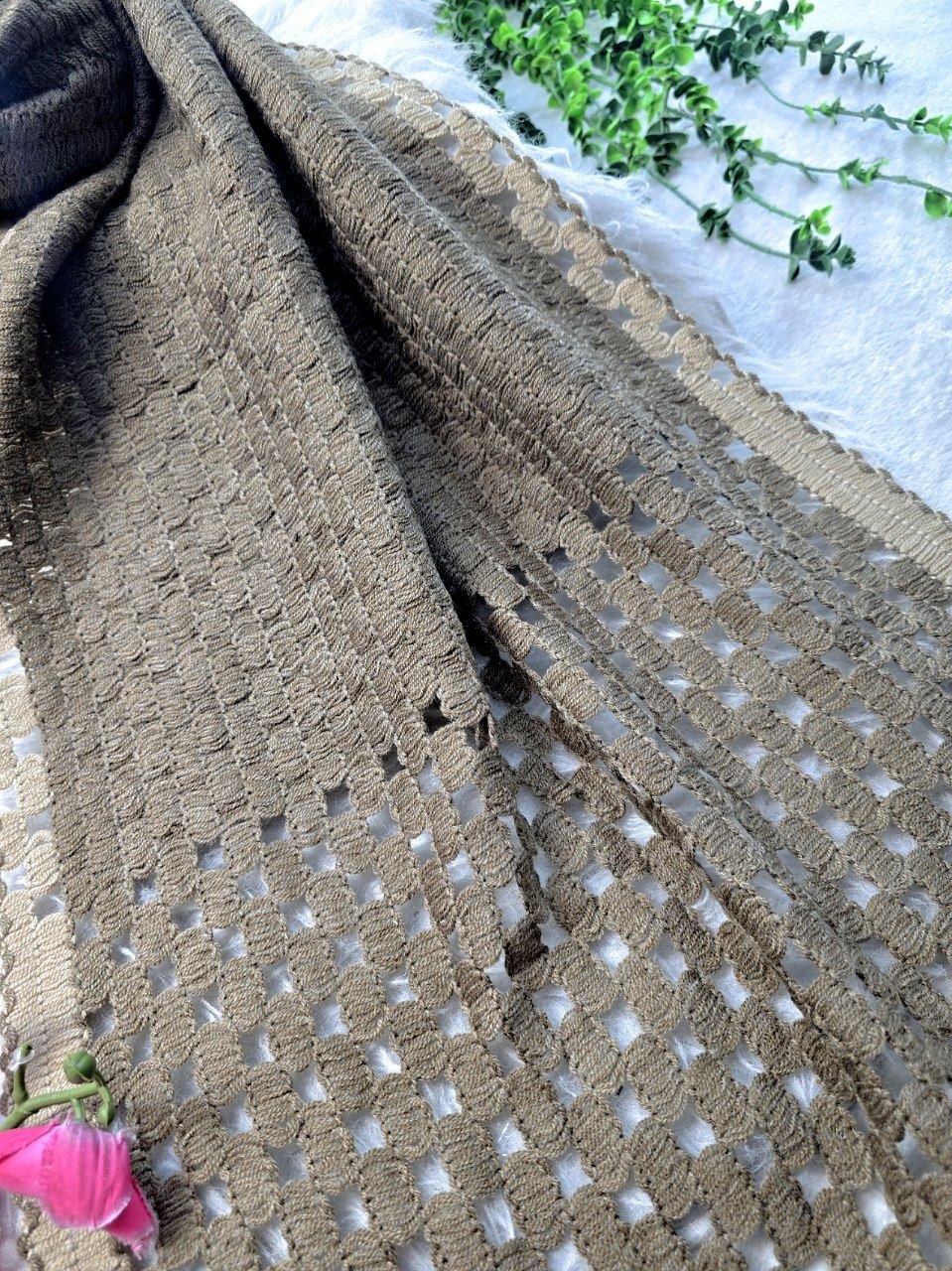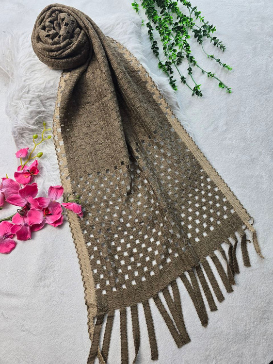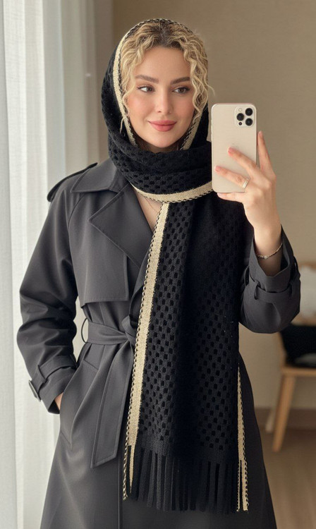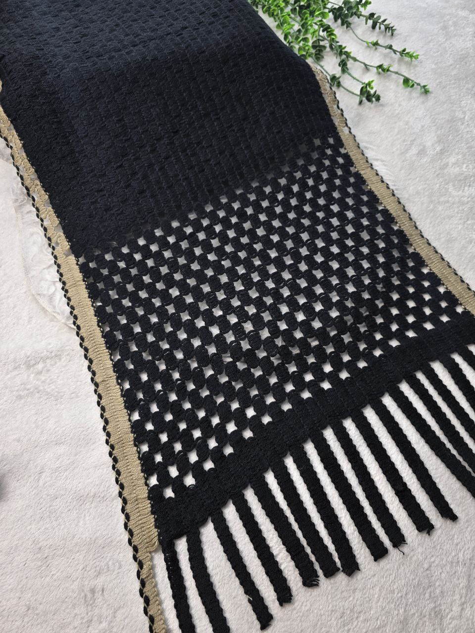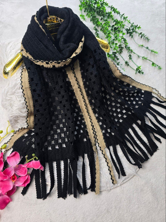 شال بافت فاخر جنس : بافت سه بعدی لب دوزی شده مشکی, نسکافه فری سایز زنانه