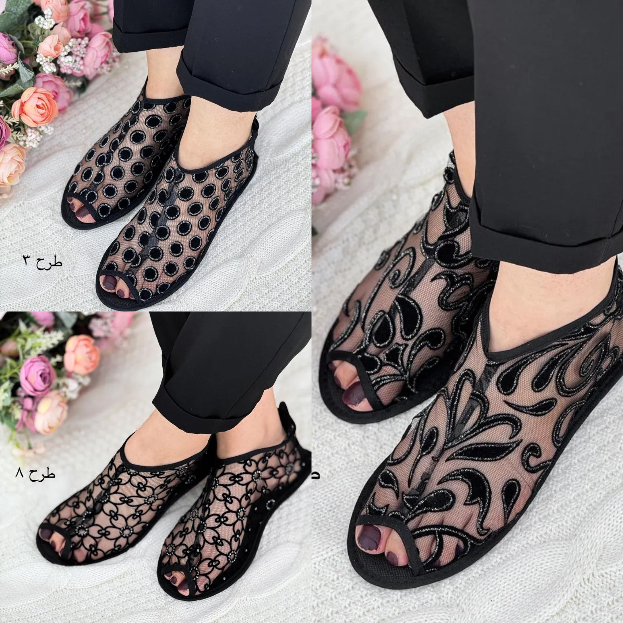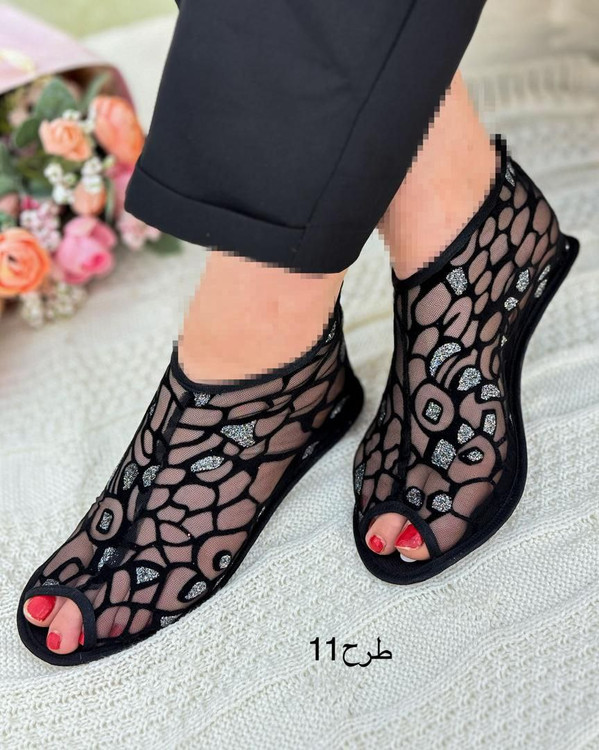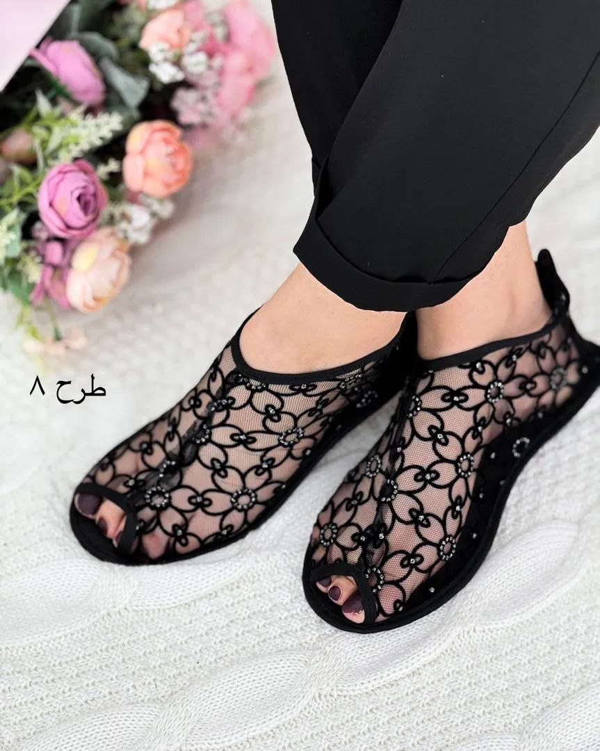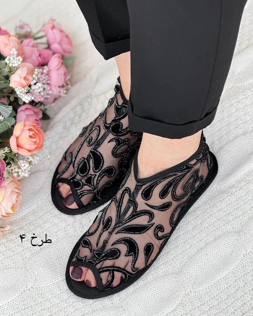 پاپوش توری جنس : زیره چرم رویی توری دایره, شاخه, گل .مخمل .قلبی .اشکی .لوزی سایز 37 تا 41